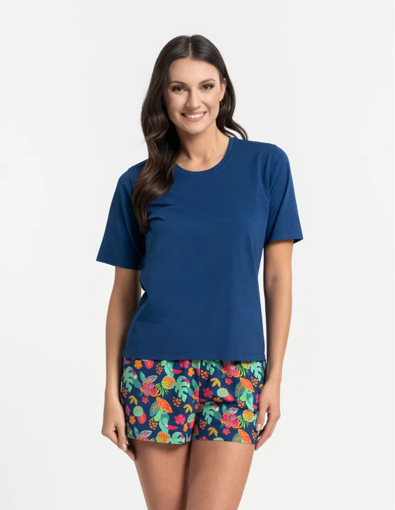 Piżama damska bawełniany komplet z krótkim rękawem i spodenkami GRANATOWY