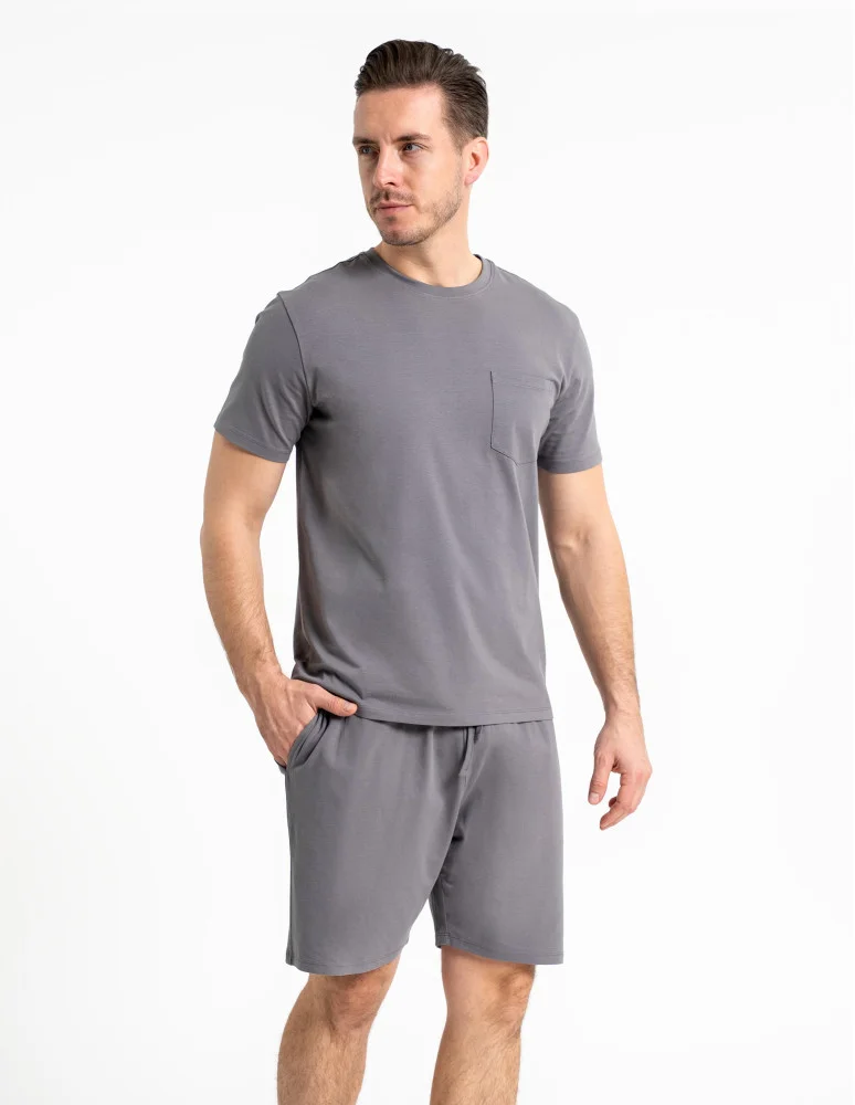 Męska piżama z krótkim rękawem bawełniana z kieszeniami GRAFIT