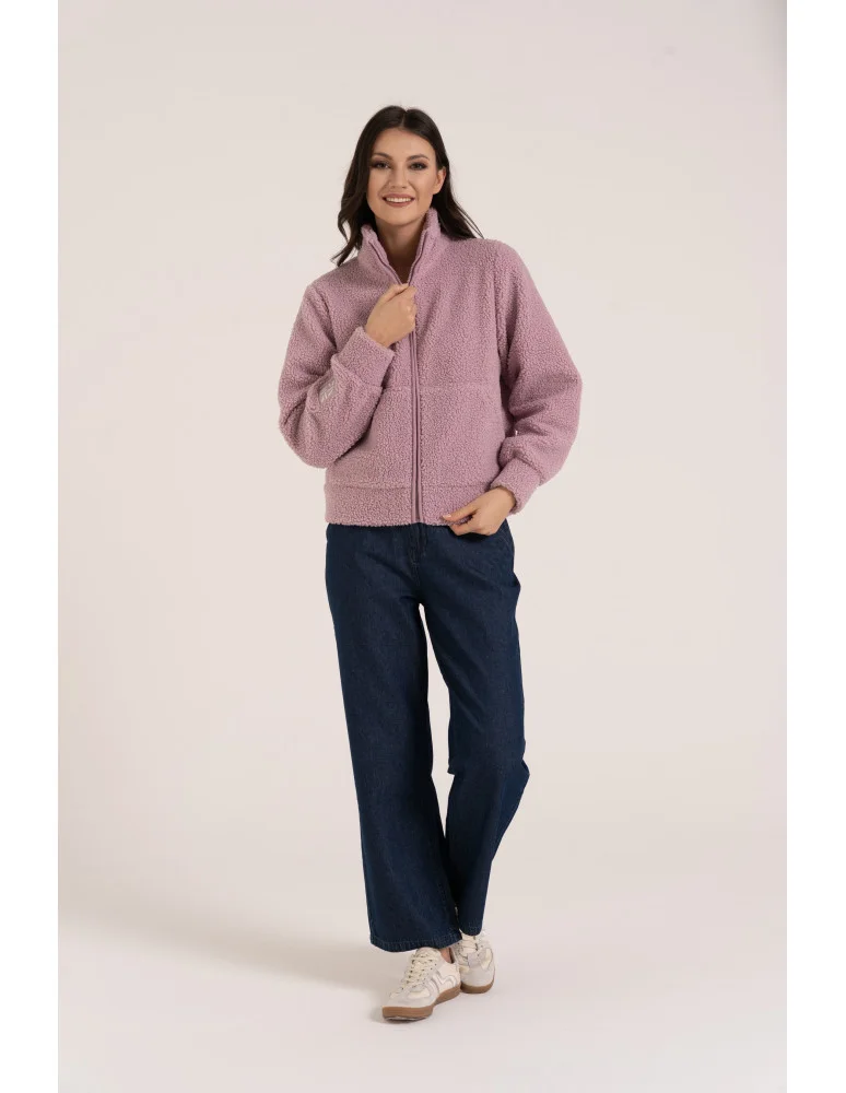 Bluza damska sherpa ze stójką RÓŻOWY