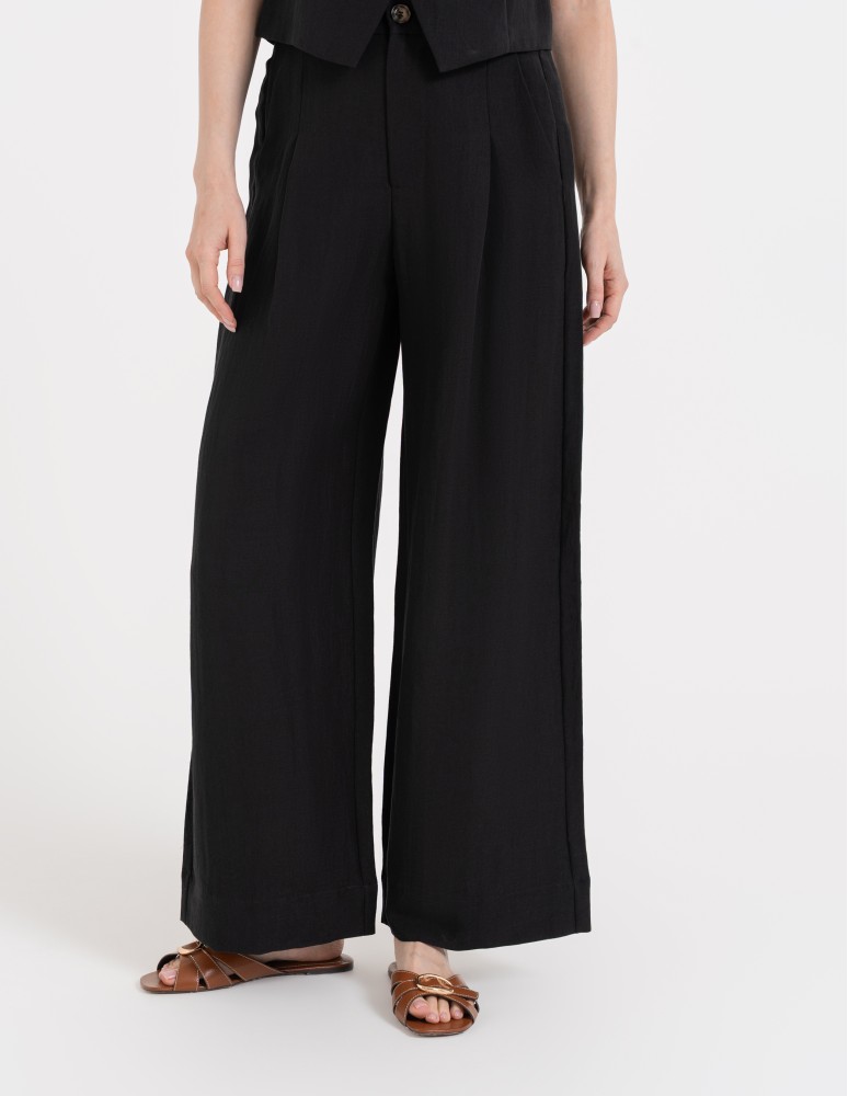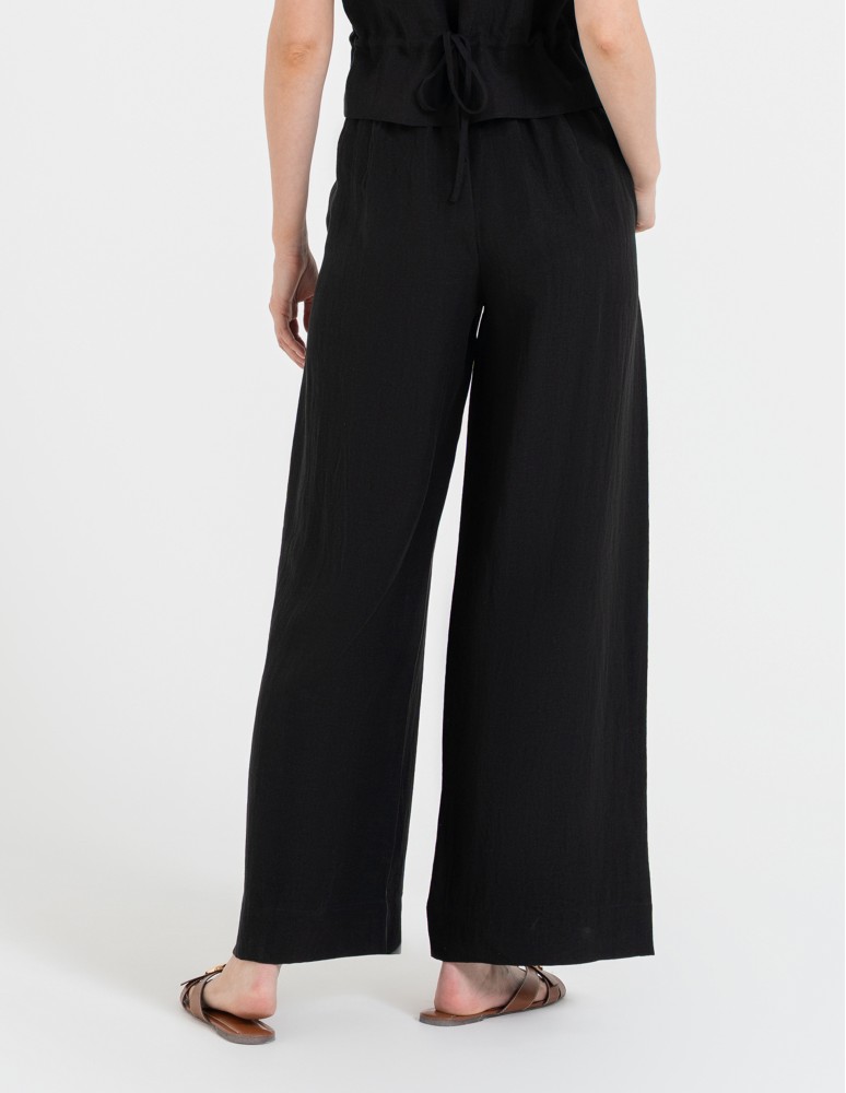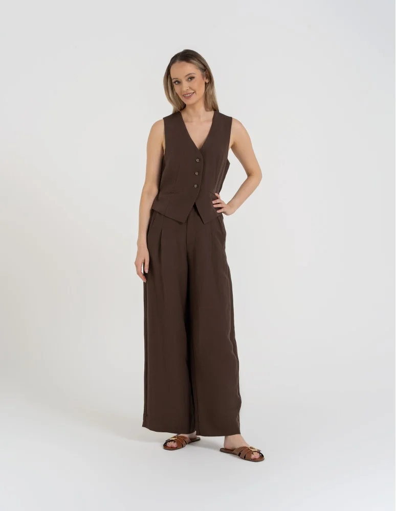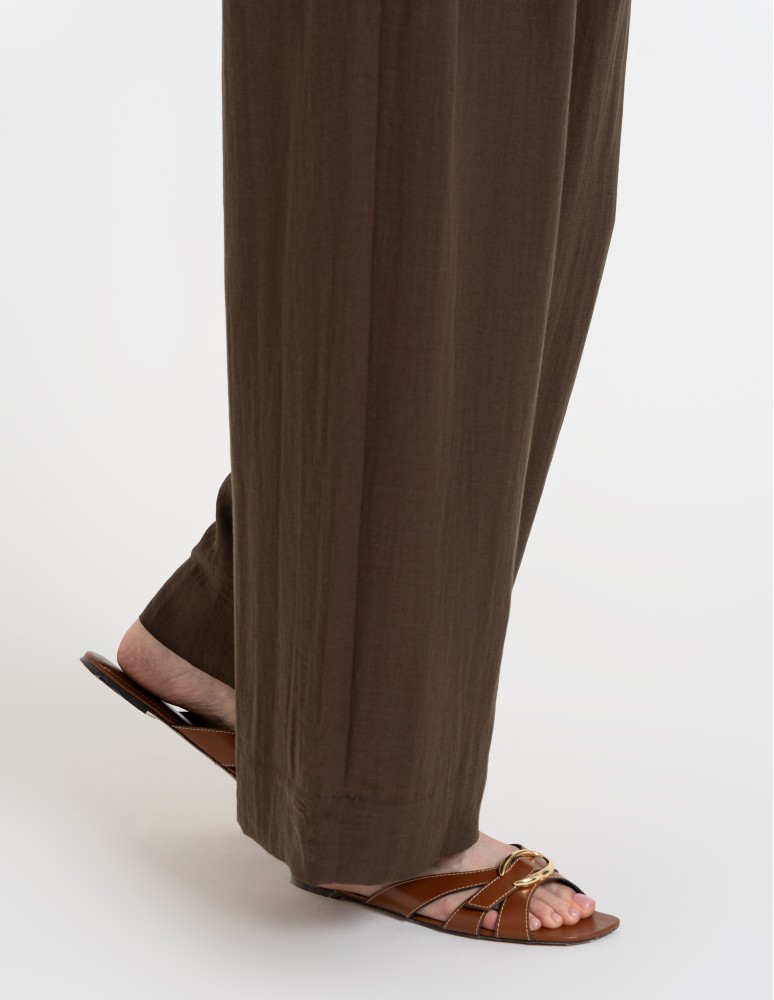 Spodnie damskie z szeroką nogawką typu wide leg z lyocellu CIEMNY BRĄZ