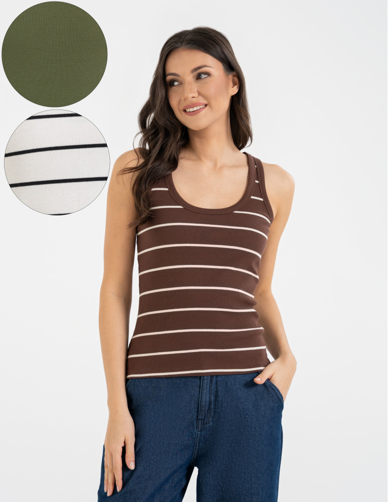 Damska koszulka tank top w prążek bawełniana BRĄZOWY