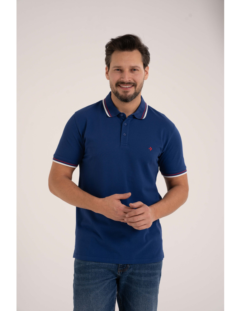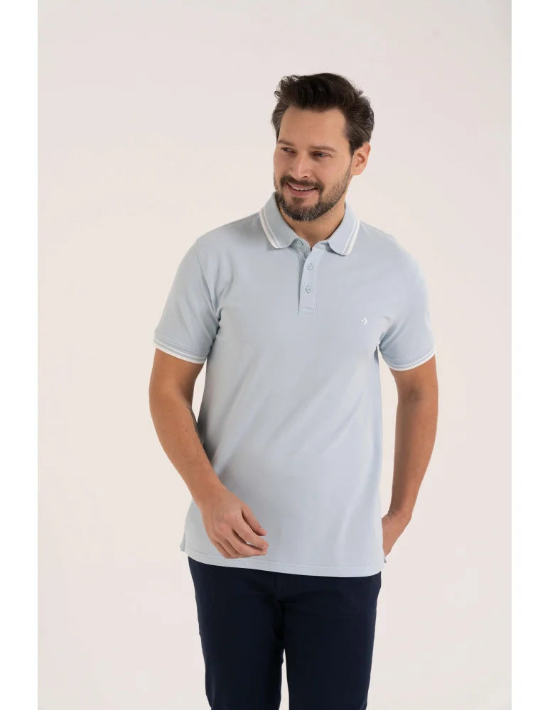 Męska koszulka polo z kolorowym paskiem na kołnierzu NIEBIESKI