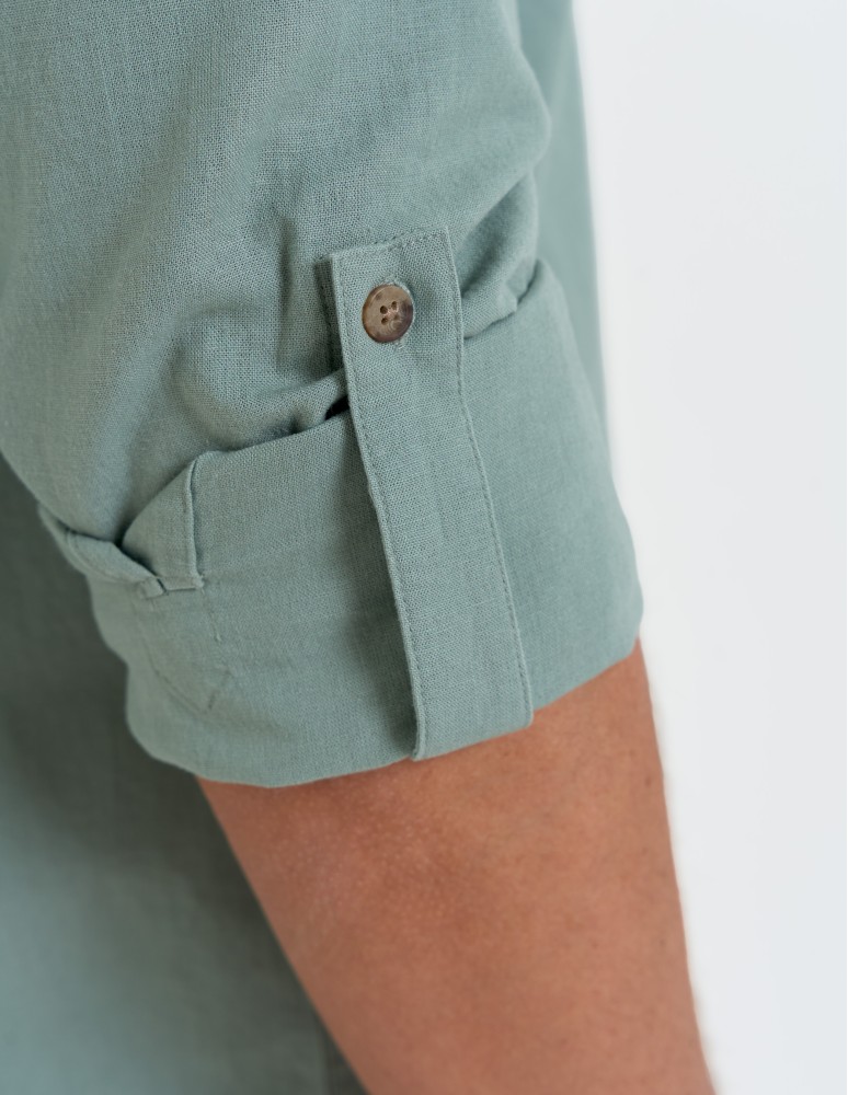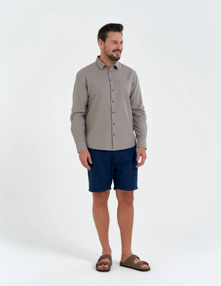 Koszula męska lniana z regulowanym rękawem BEŻOWY