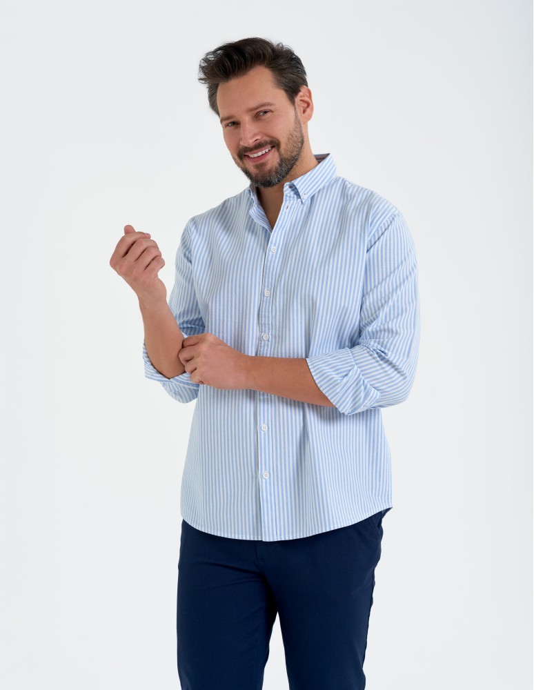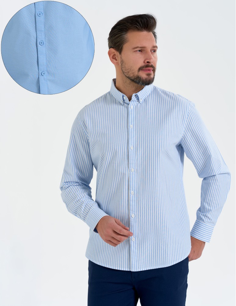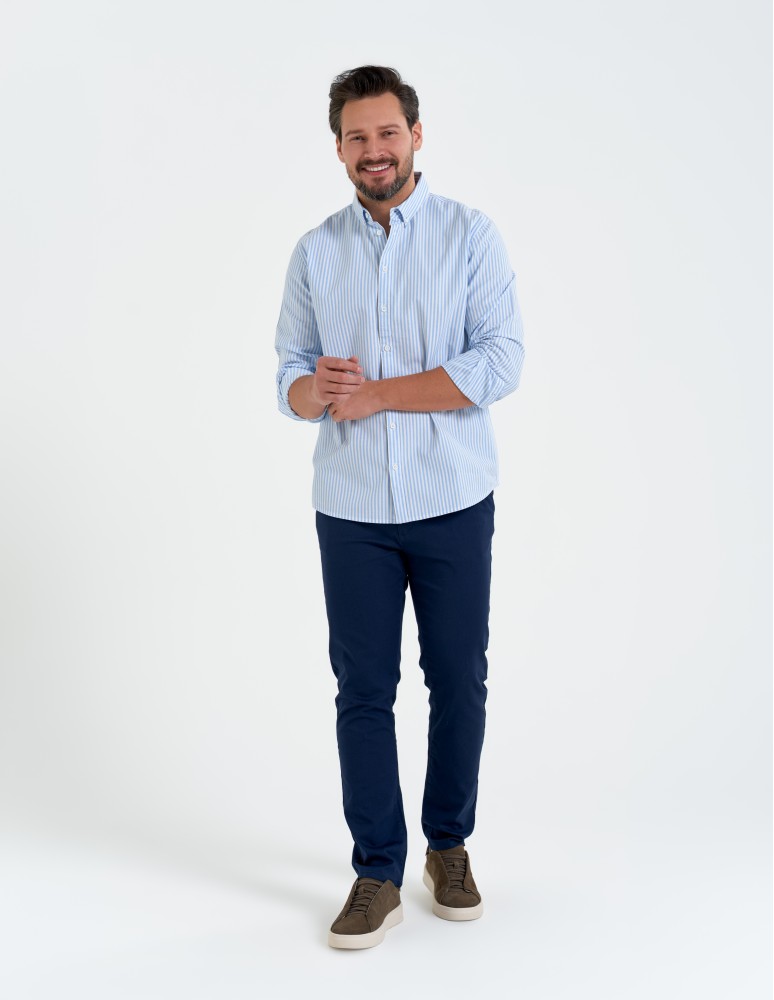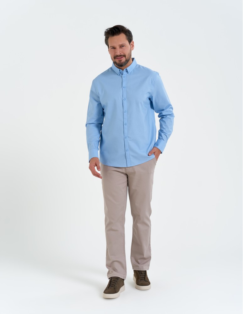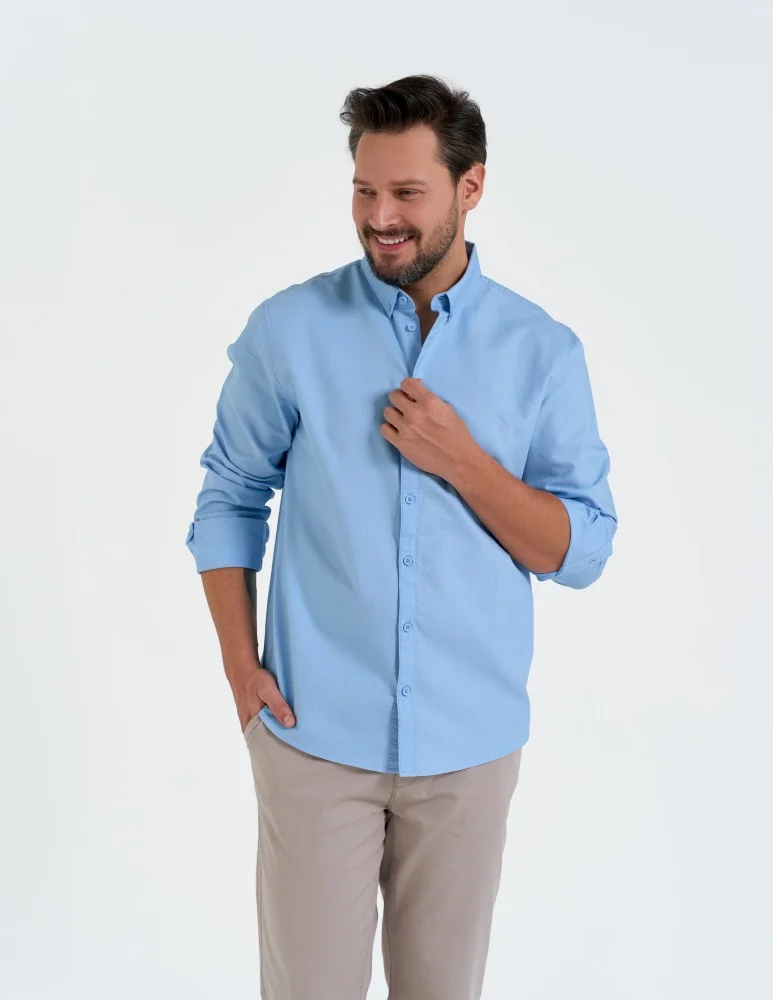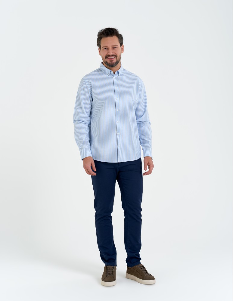 Koszula męska bawełniana z długim rękawem typu oxford NIEBIESKI