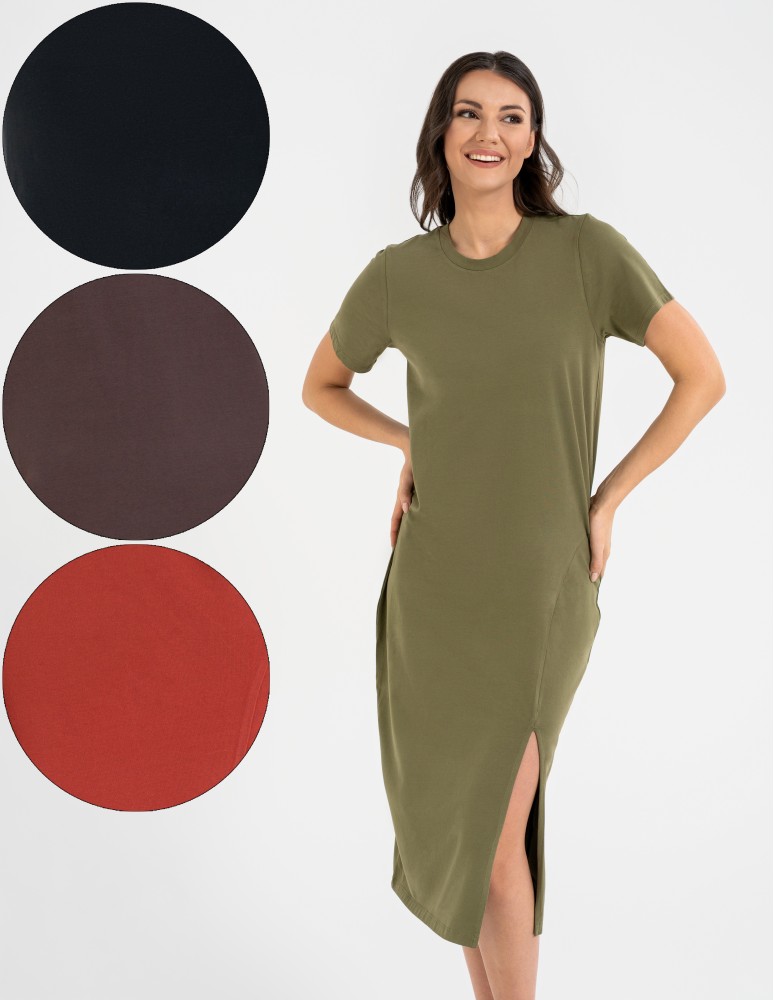 - fason typu t-shirt dress o długości midi