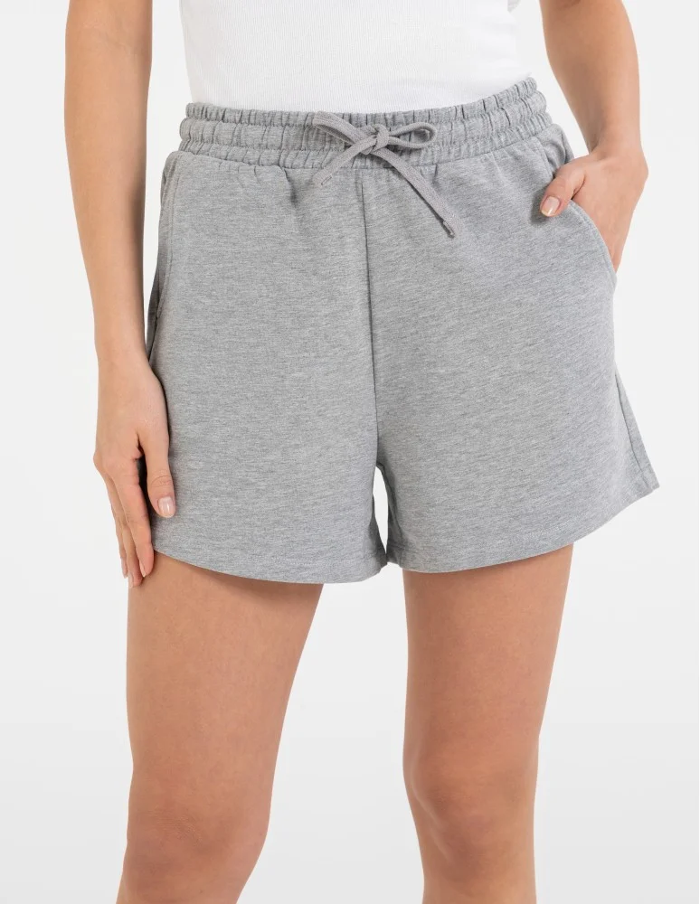 Szorty damskie dresowe bawełniane krótkie klasyczne z wiązaniem SZARY