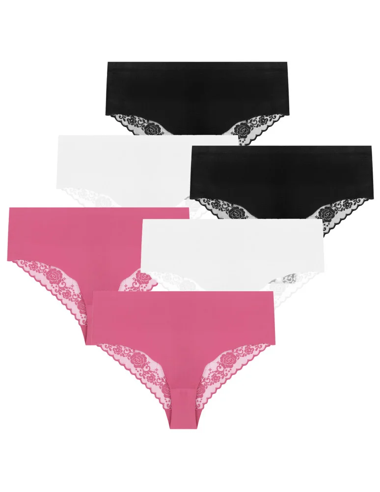 Majtki damskie figi maxi bikini laserowo cięte koronka 6-pak WIELOKOLOROWY