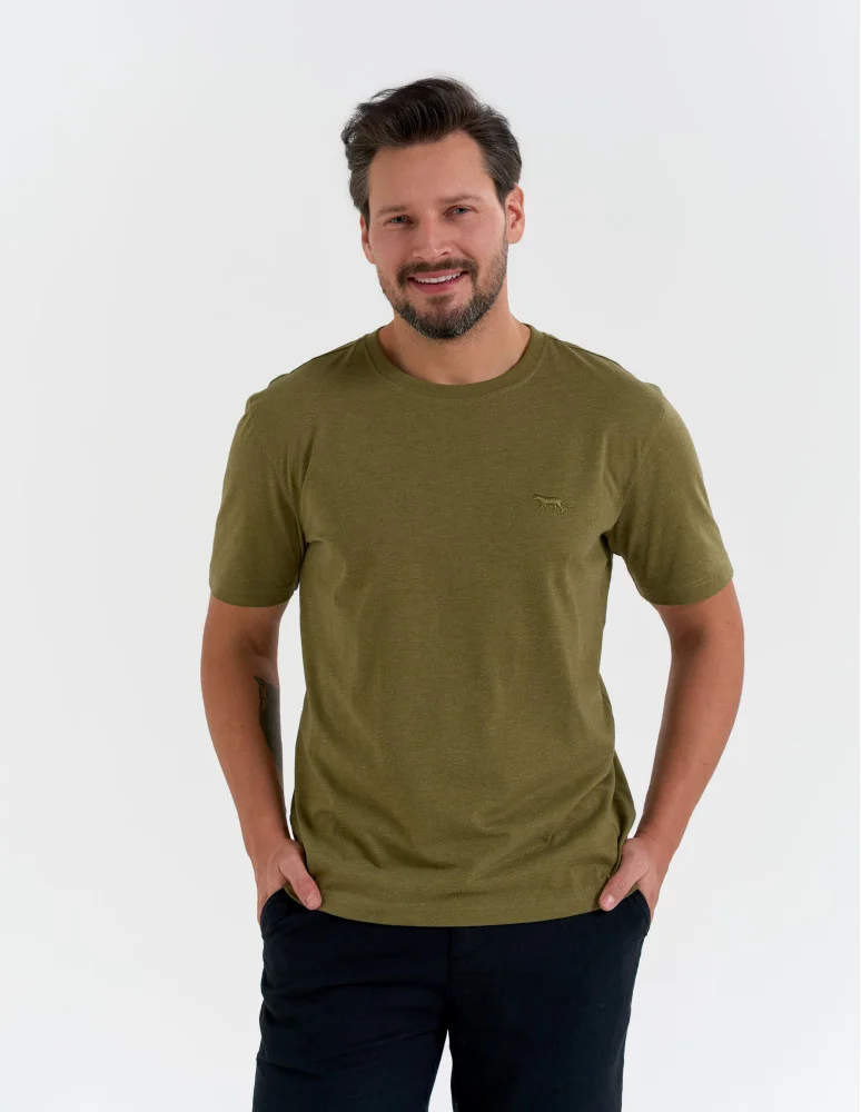 Męska koszulka z krótkim rękawem z efektem peach touch ZIELONY