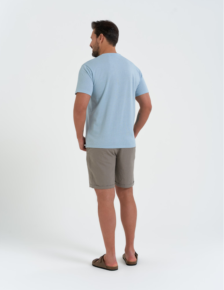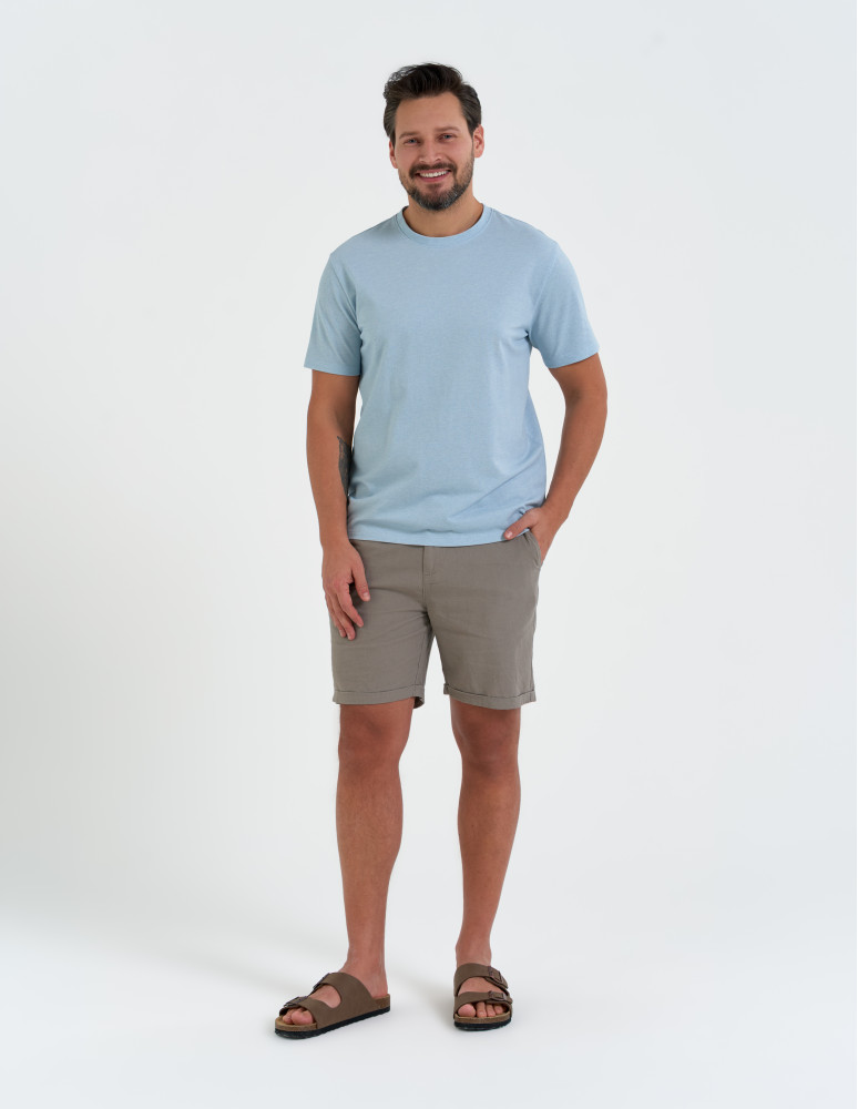 Minimalistyczny, gładki design bez wzoru oraz neutralna, letnia kolorystyka sprawiają, że koszulka doskonale pasuje zarówno do jeansów i chinosów, jak i do bardziej eleganckich stylizacji z marynarką. To idealny wybór dla mężczyzn ceniących prostotę, styl i wygodę.