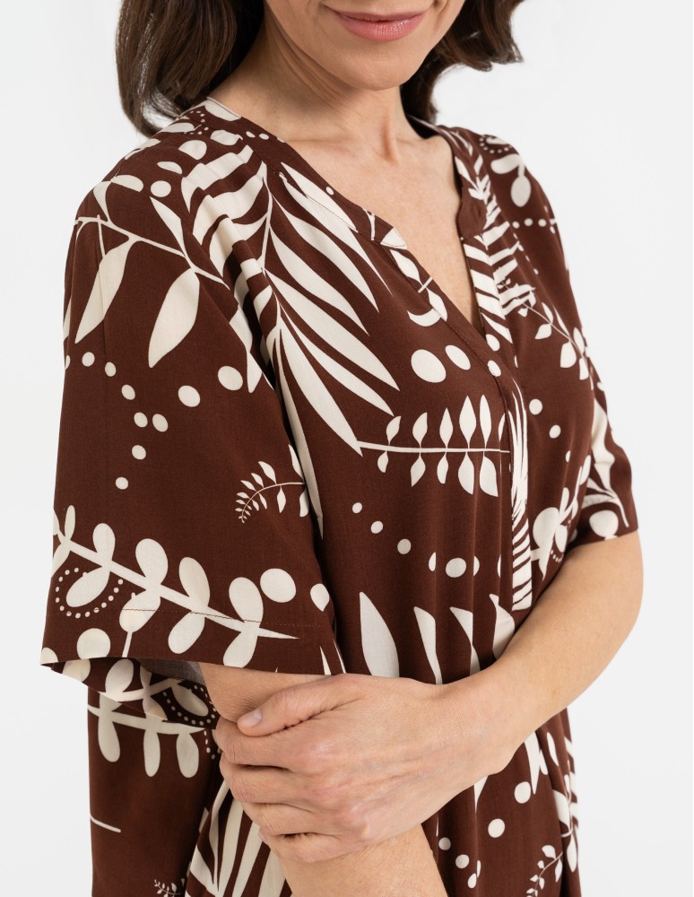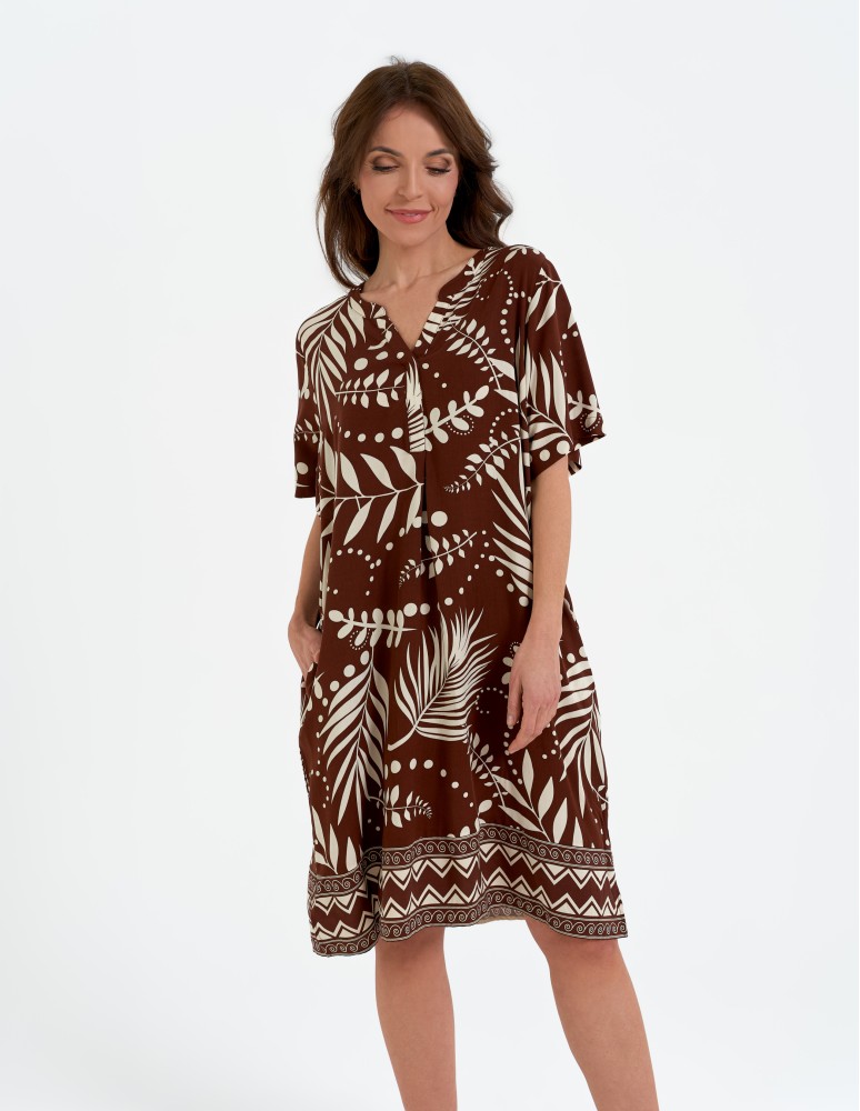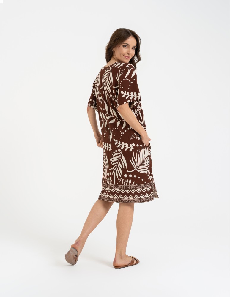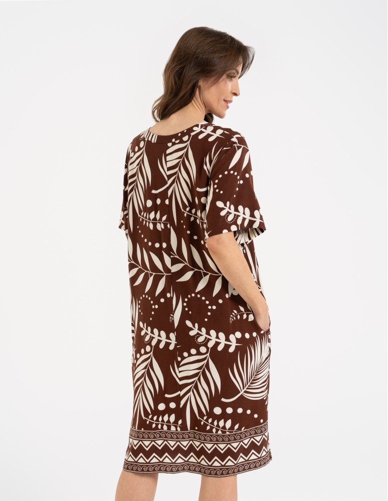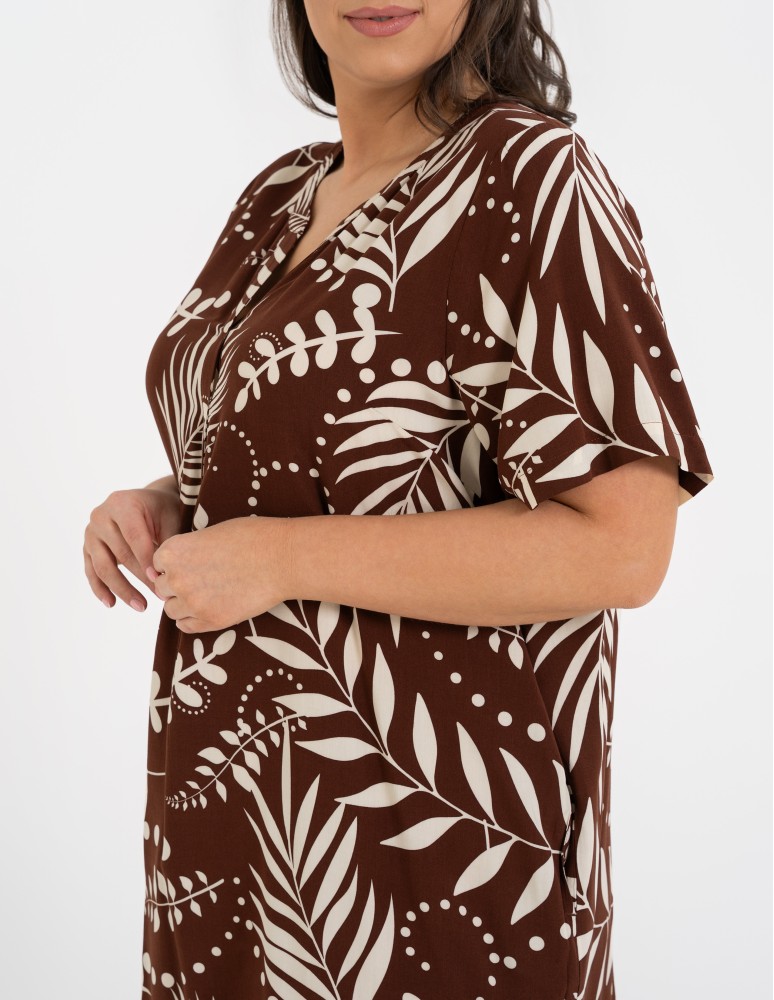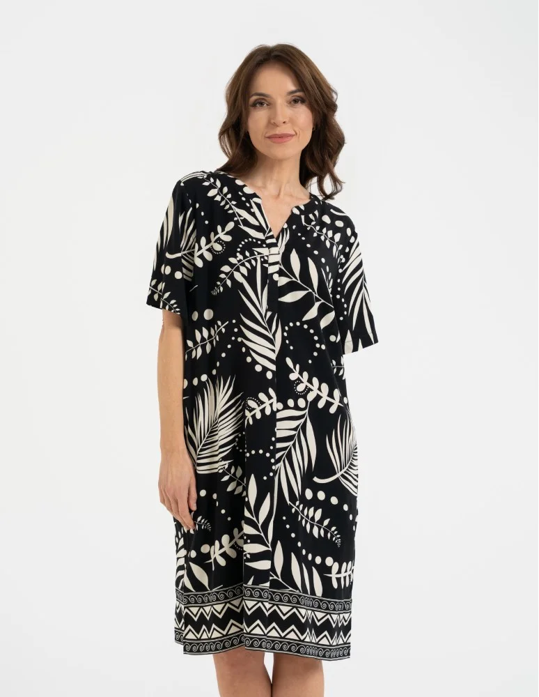 Sukienka damska midi wiskozowa o luźniejszym kroju z motywem roślinnym WZÓR 2