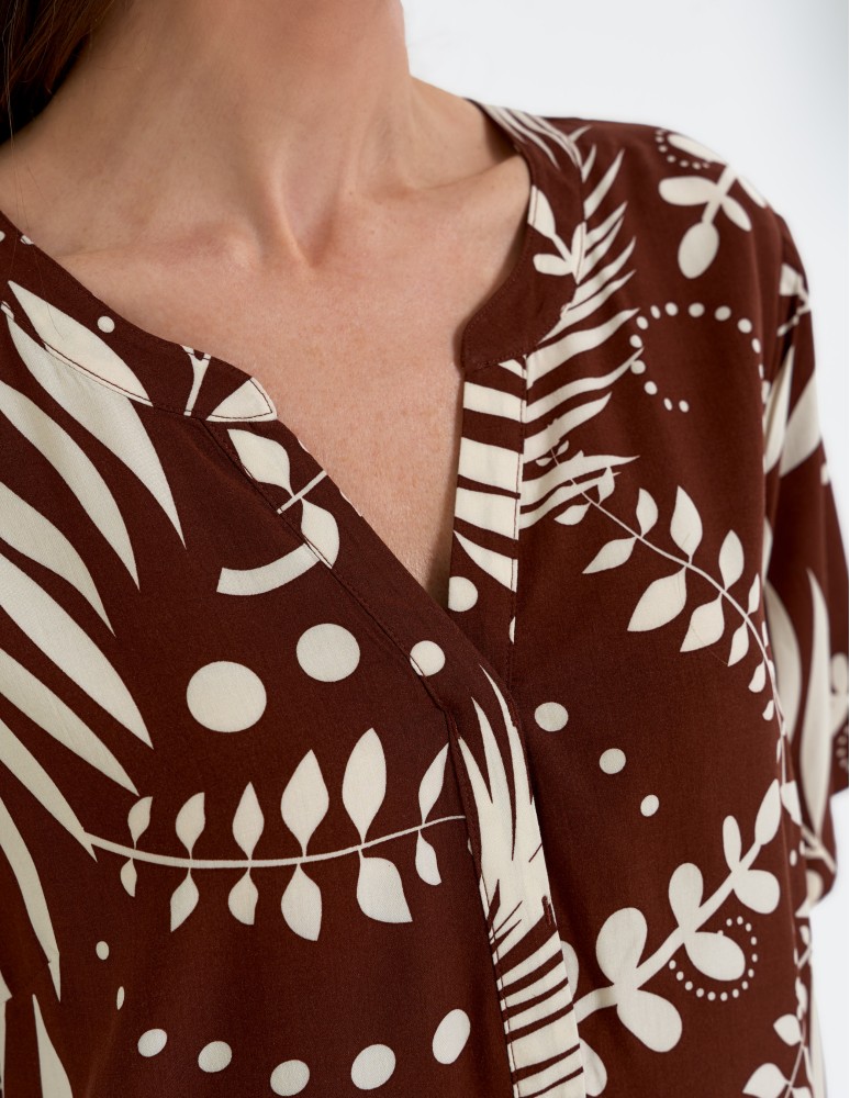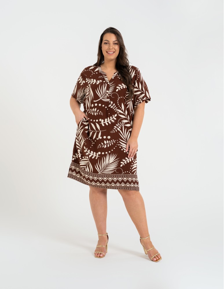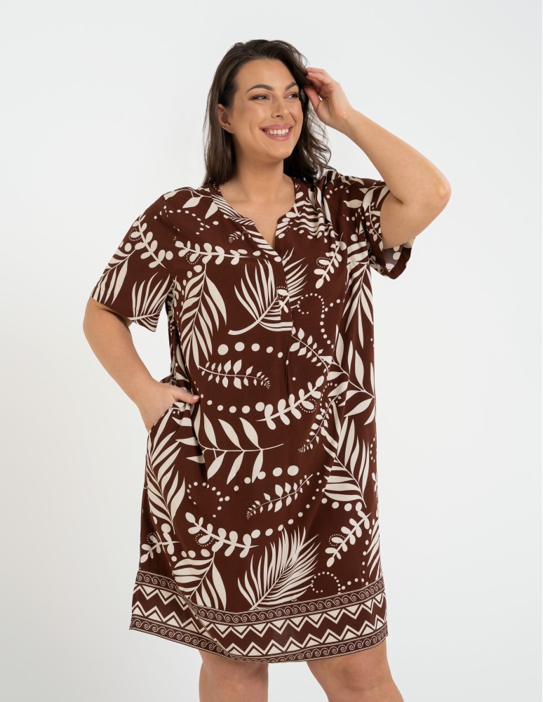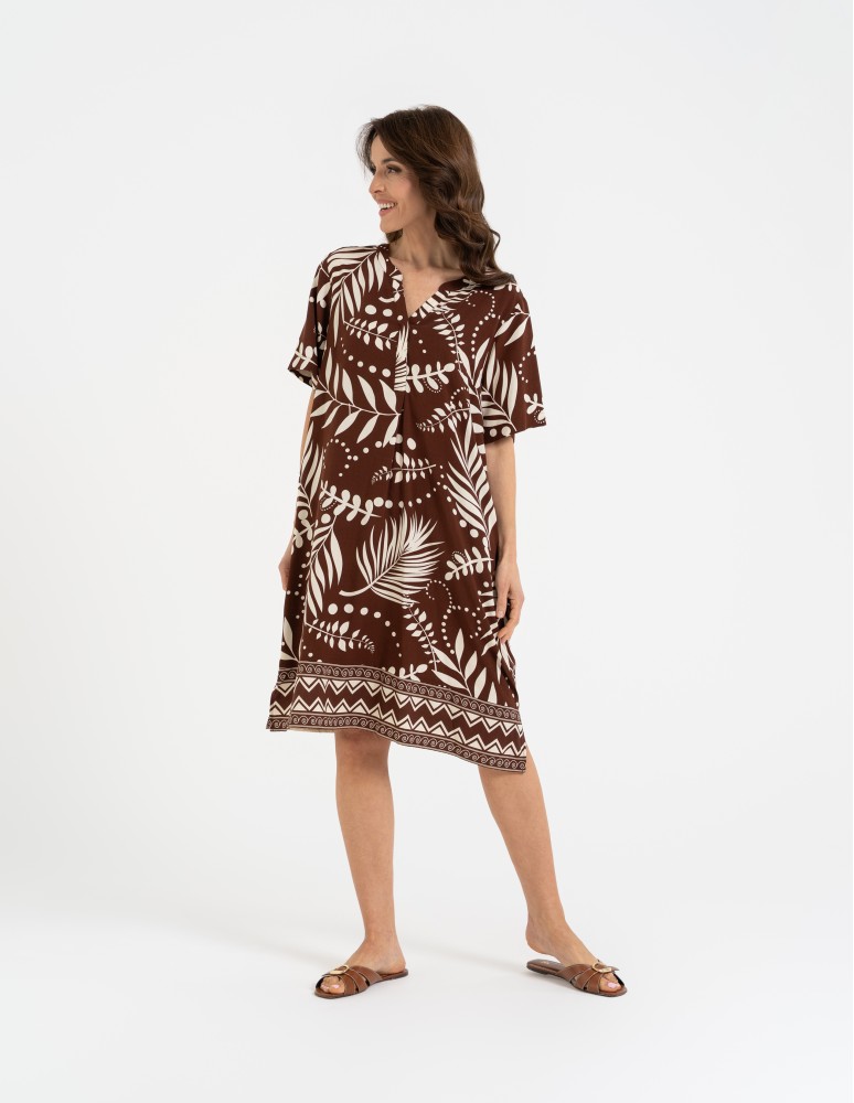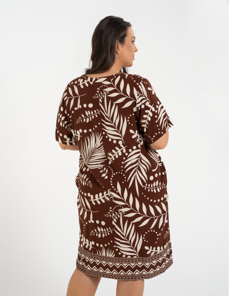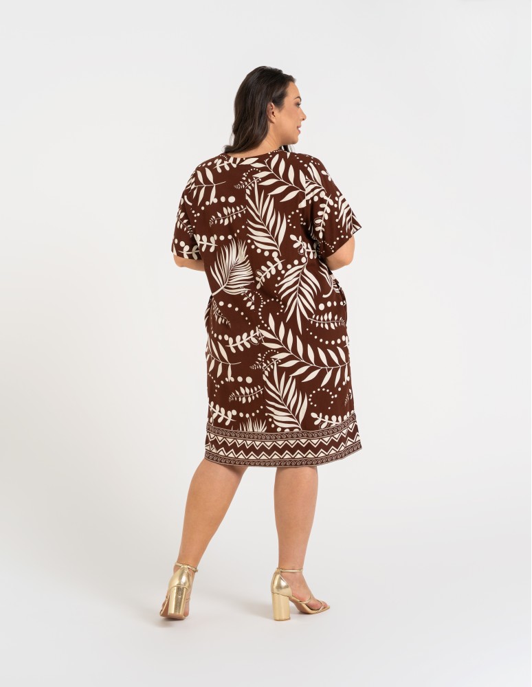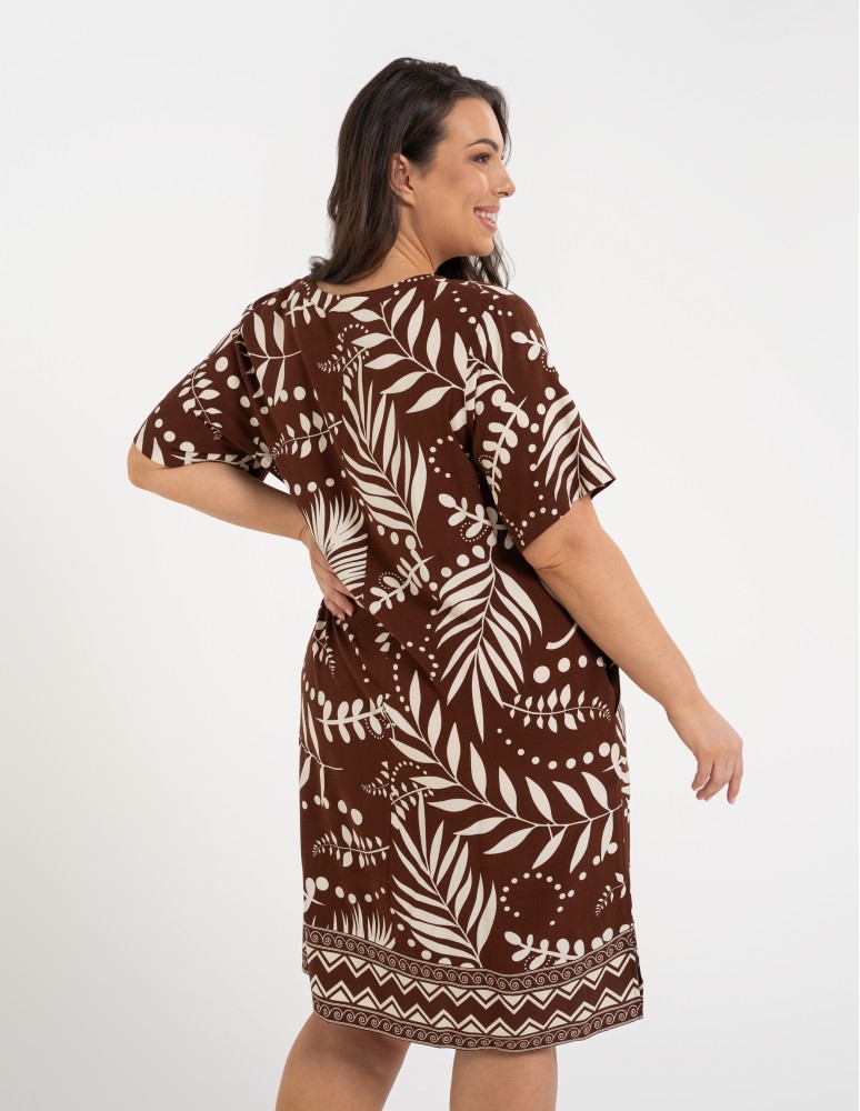 Sukienka damska midi wiskozowa o luźniejszym kroju z motywem roślinnym WZÓR 2