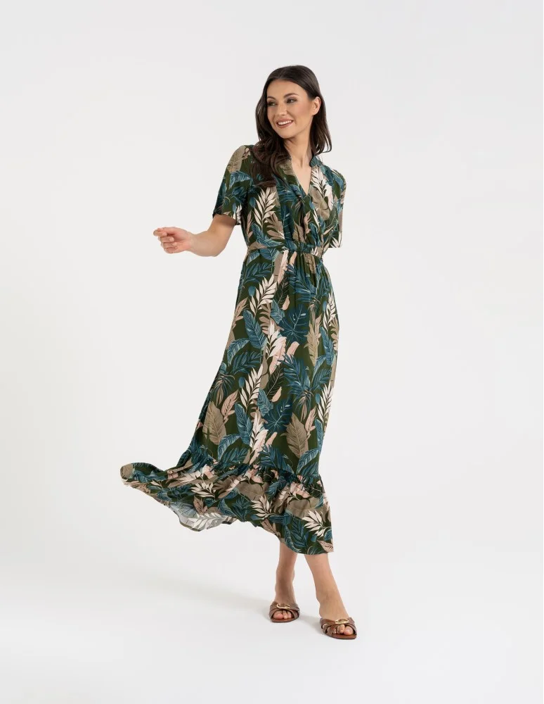 Sukienka damska maxi z wiskozy z kopertowym dekoltem WZÓR 1