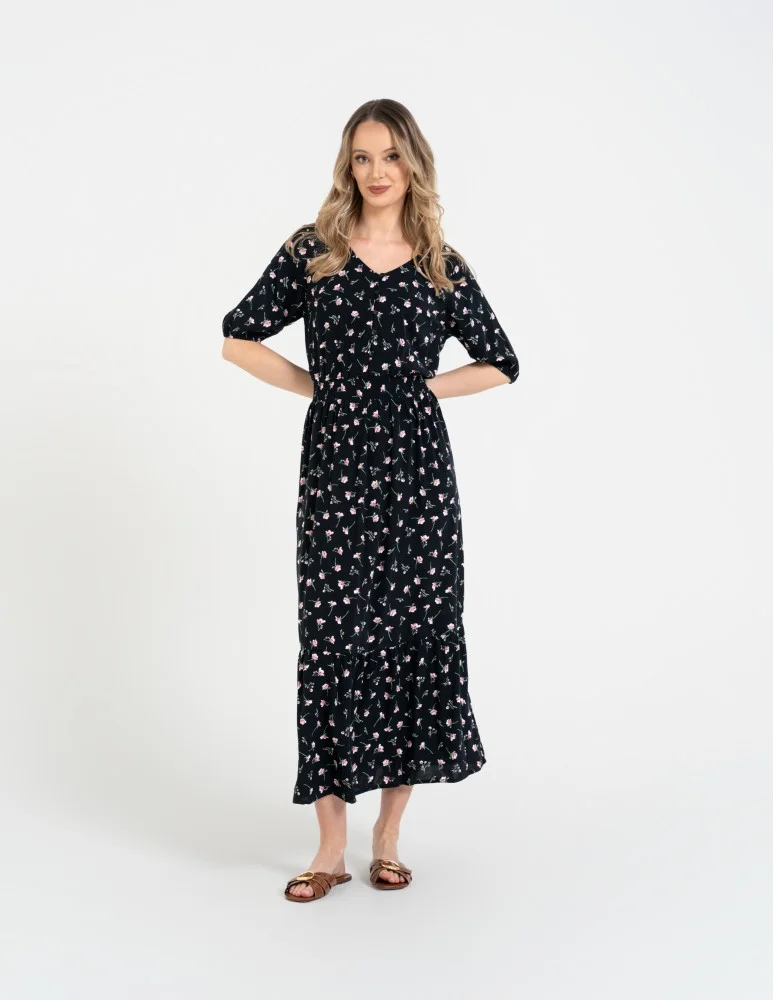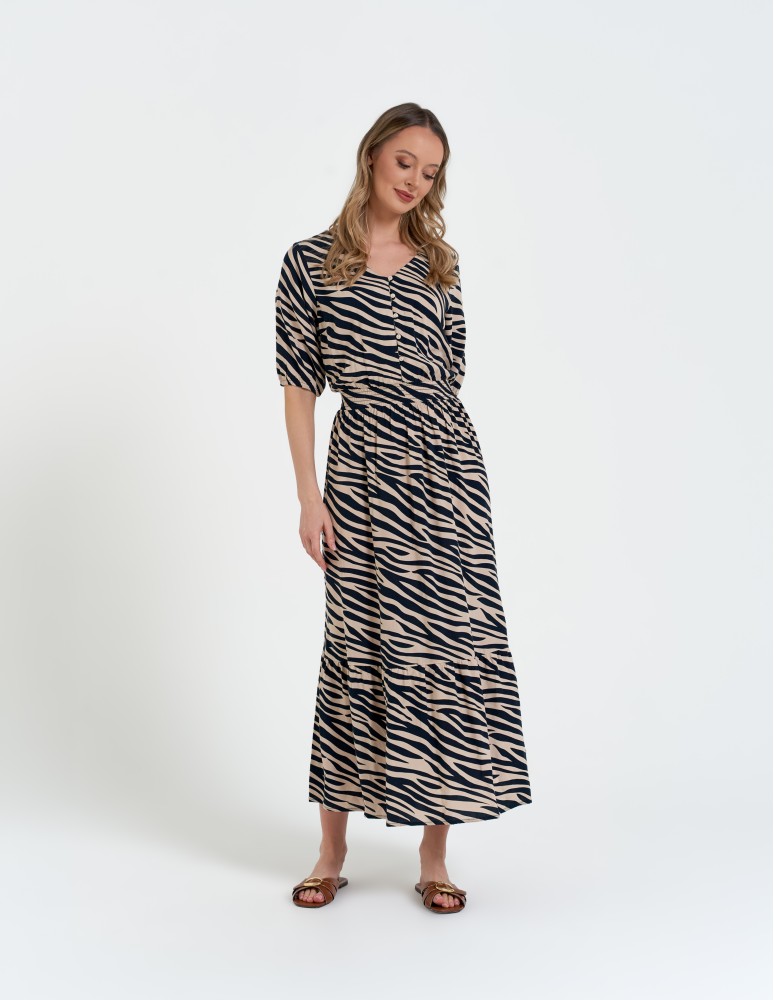 Sukienka damska maxi z wiskozy z elastyczną talią WZÓR 1