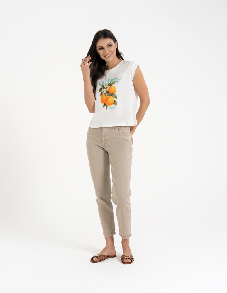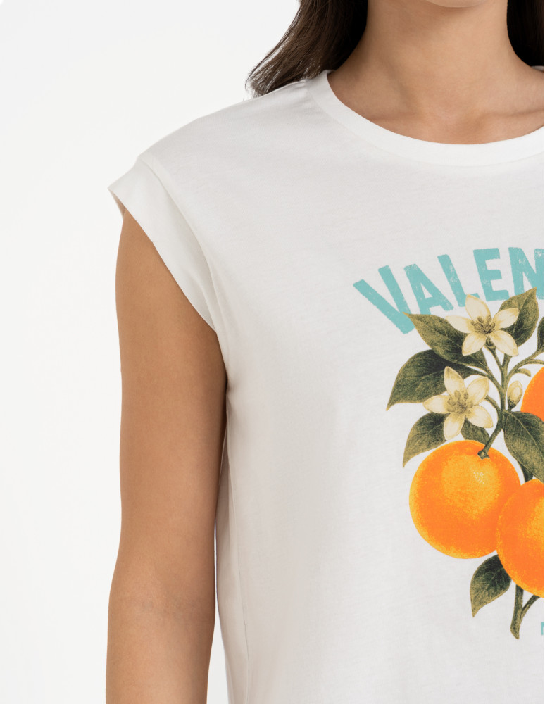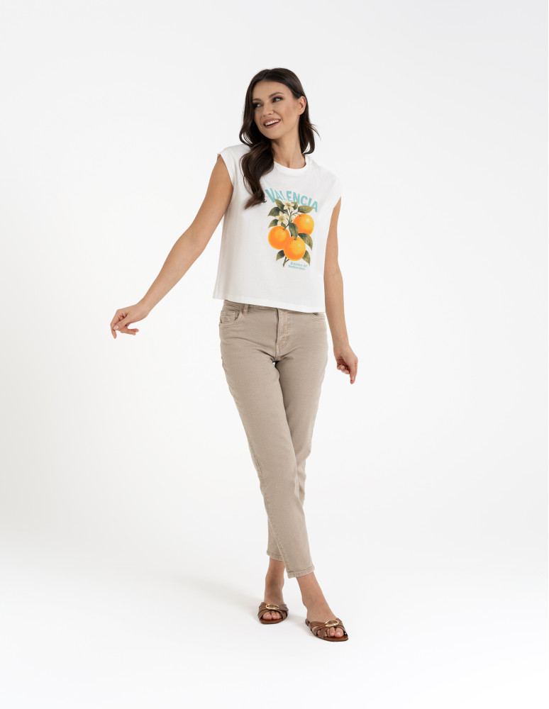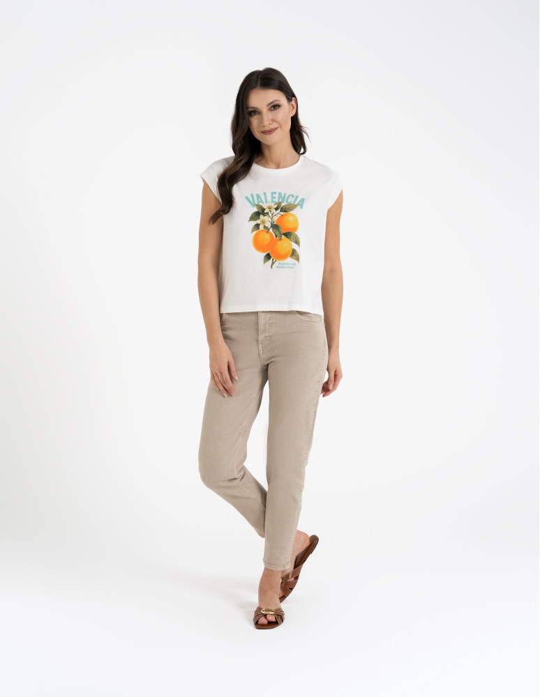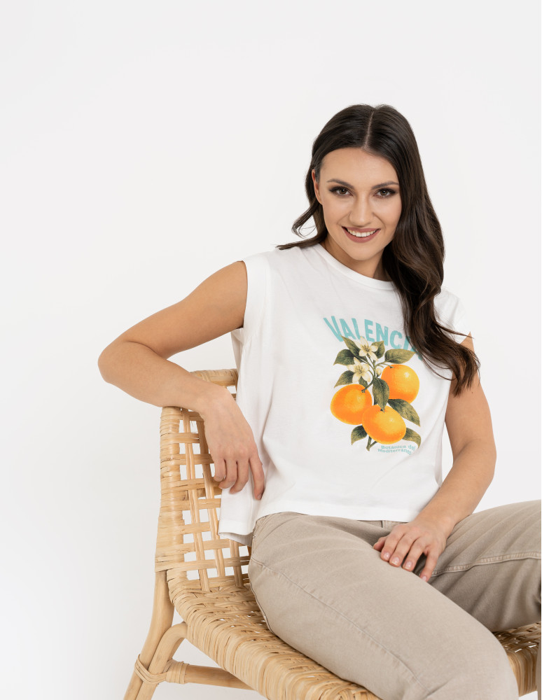 T-shirt damski z nadrukiem to model stworzony z myślą o kobietach, które kochają kolory i wygodę, świetnie sprawdzi się na wakacjach.