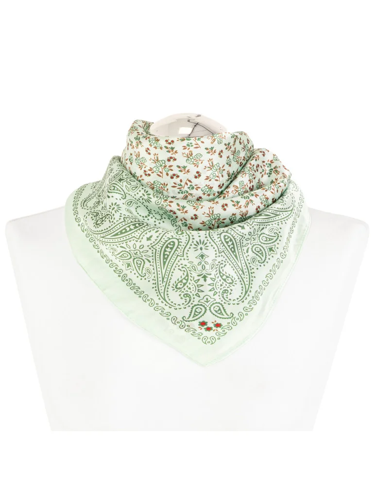 Apaszka damska z motywem paisley i florystycznym wzorem ZIELONY