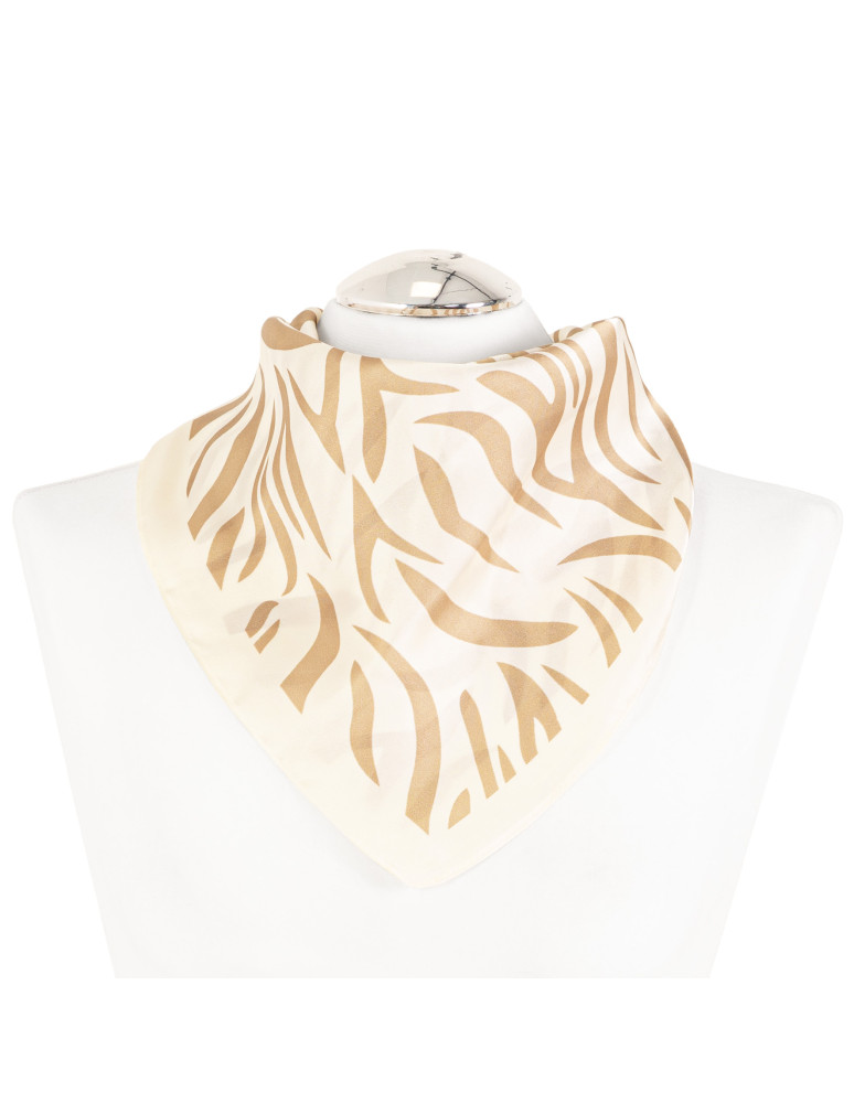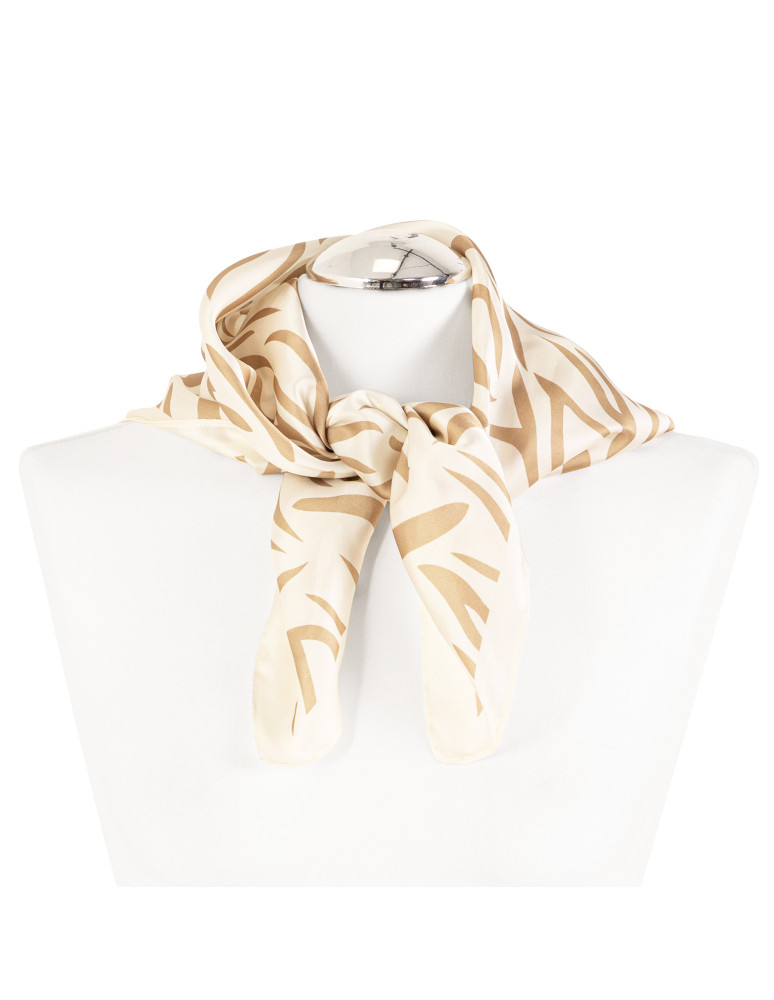 Ta damska apaszka to stylowy dodatek, który podkreśla charakter codziennych i bardziej eleganckich stylizacji. Wykonana z lekkiego, przyjemnego w dotyku materiału, miękko układa się na szyi i zapewnia komfort noszenia przez cały dzień. Klasyczny, kwadratowy format o wymiarach 68 × 68 cm pozwala na swobodne wiązanie na wiele sposobów – na szyi, przy torebce lub jako element fryzury. Całość zdobi wyrazisty, abstrakcyjny wzór o płynnych liniach, który nadaje apaszce nowoczesnego, dekoracyjnego charakteru. To uniwersalny dodatek, który uzupełnia stylizację bez dominowania jej formy.