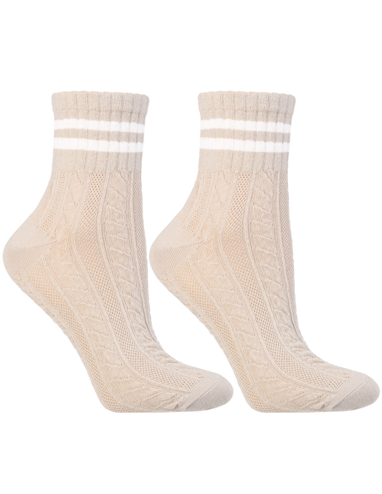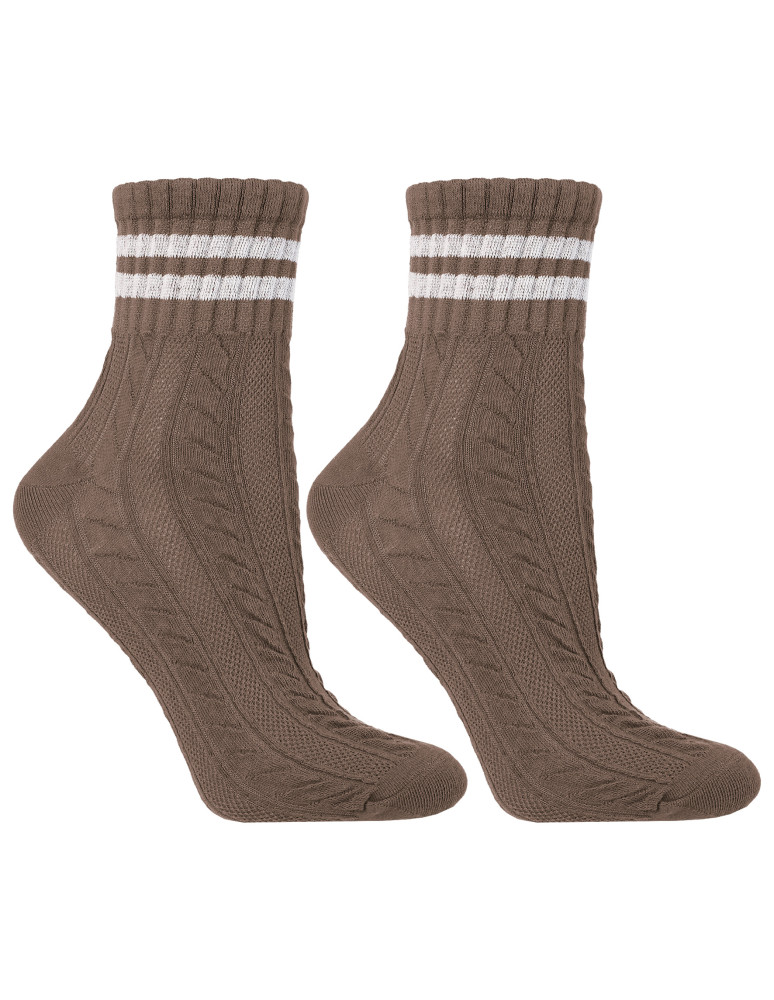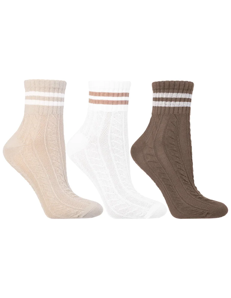 Skarpetki damskie za kostkę w warkoczowy splot 3-pak WIELOKOLOROWY