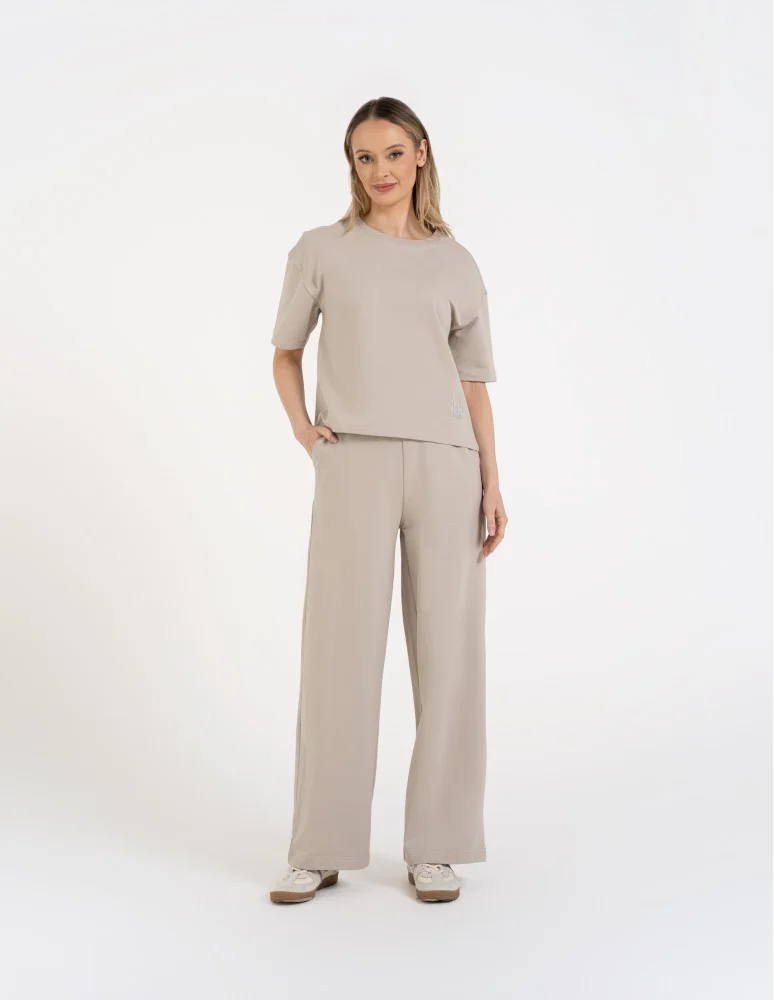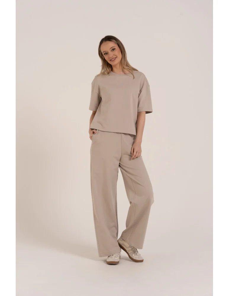 Spodnie damskie dresowe z prostym, luźnym krojem, wykonane z wysokiej jakości materiału, który zapewnia komfort przez cały dzień. Elastyczny pas gwarantuje idealne dopasowanie do sylwetki, a szerokie nogawki zapewniają swobodę ruchów. Spodnie mają klasyczny wygląd, idealne do codziennych stylizacji – pasują do t-shirtów, bluz i swetrów, tworząc wygodny i modny zestaw na co dzień.