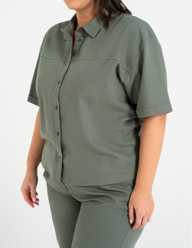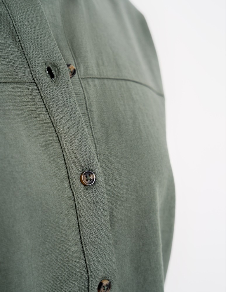Lekka koszula damska wykonana z mieszanki lnu i wiskozy to idealne połączenie naturalnej przewiewności i miękkości. Tkanina jest oddychająca, przyjemna dla skóry i świetnie sprawdza się w cieplejsze dni, zapewniając komfort przez cały dzień.