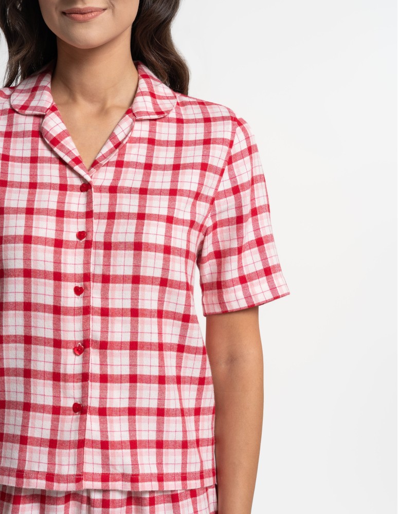 Piżama damska rozpinana dwuczęściowa w kratkę CZERWONY