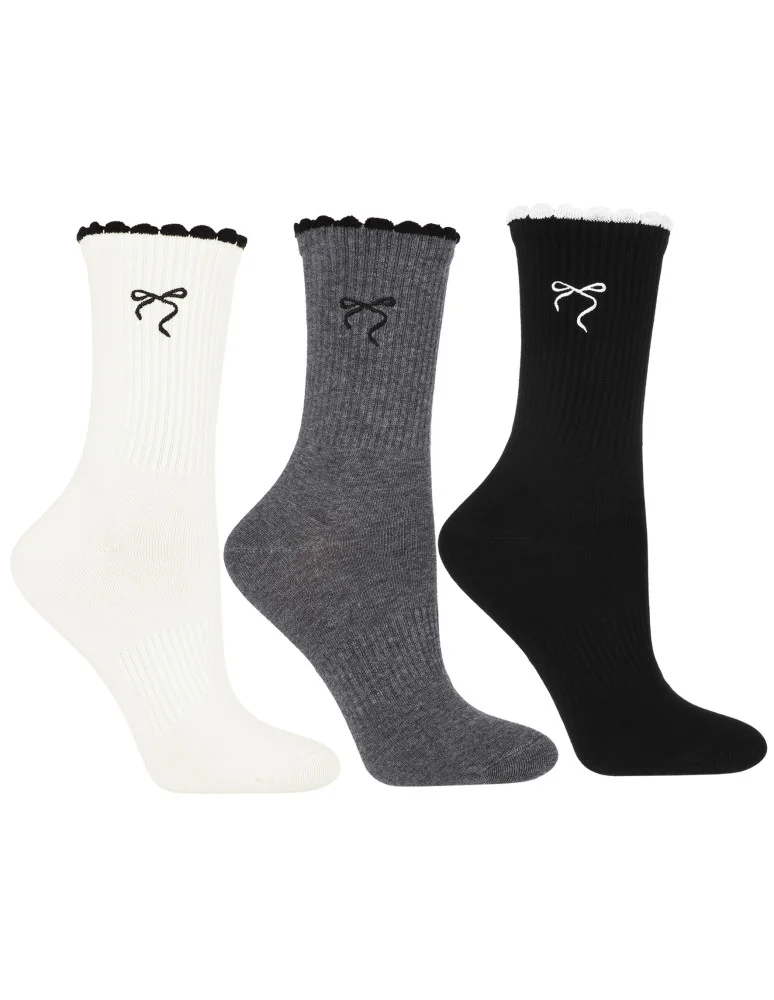 Skarpetki damskie długie z kokardką 3-pak WIELOKOLOROWY