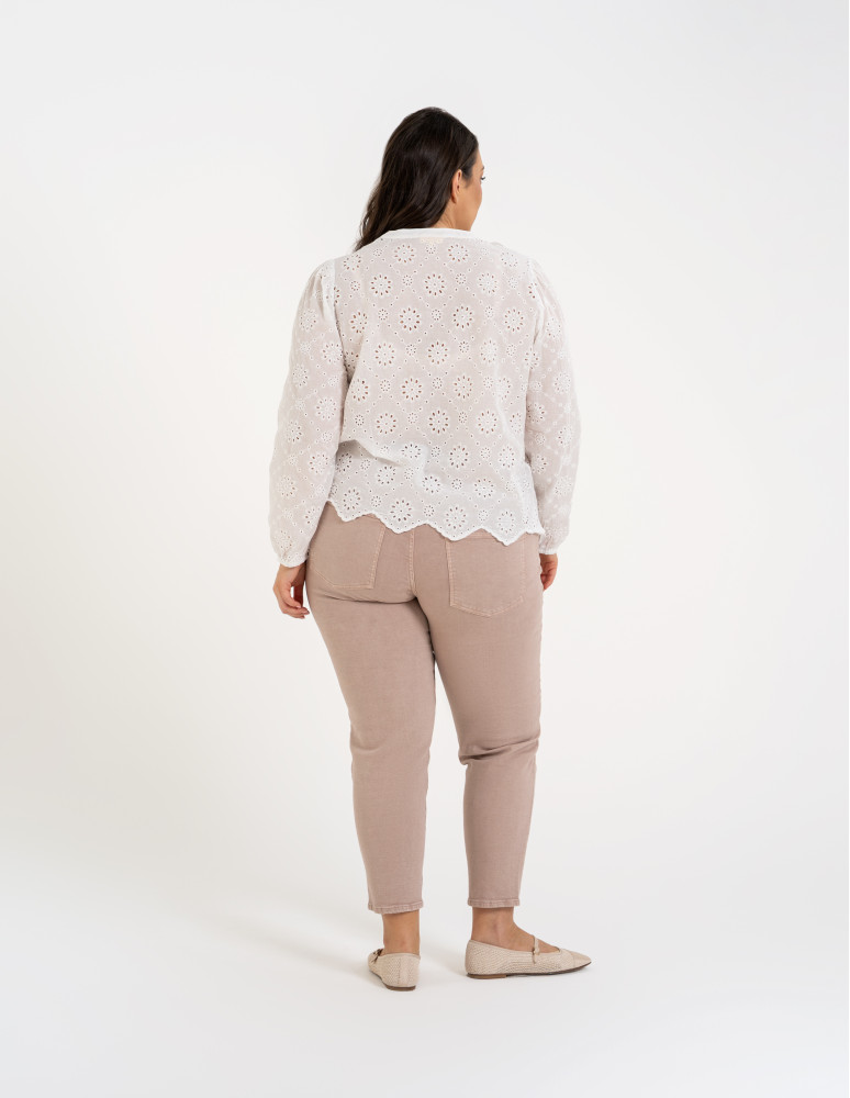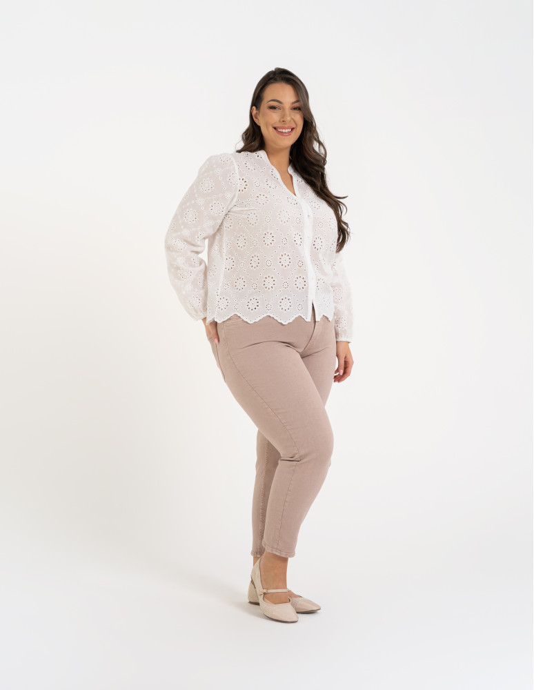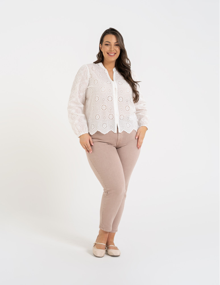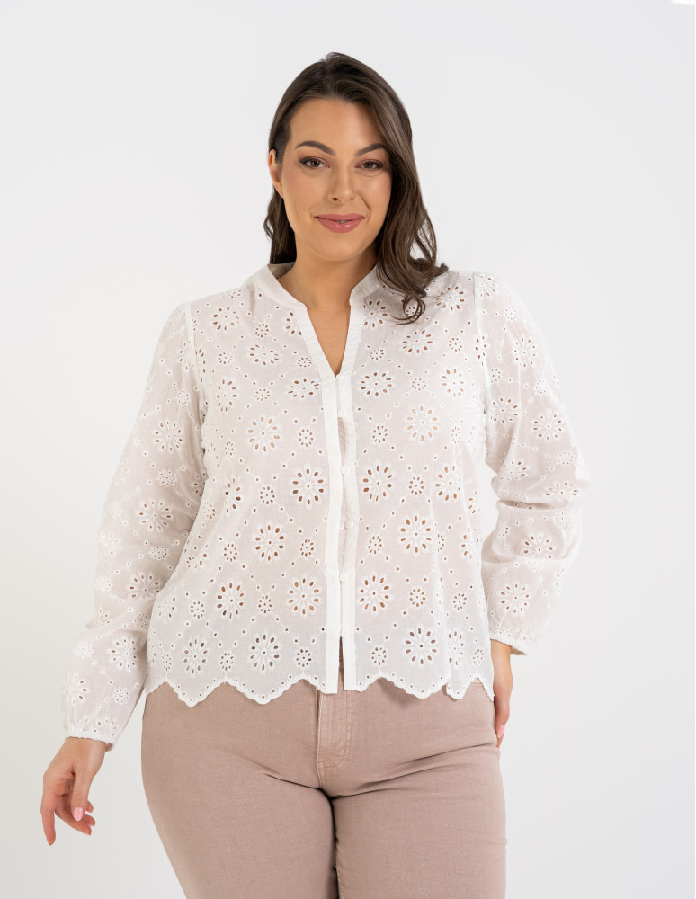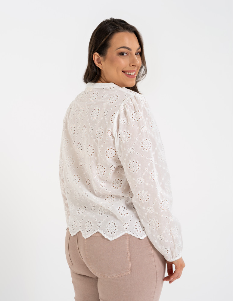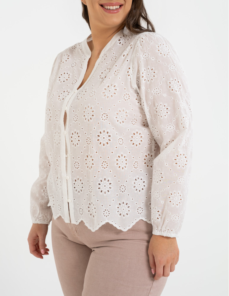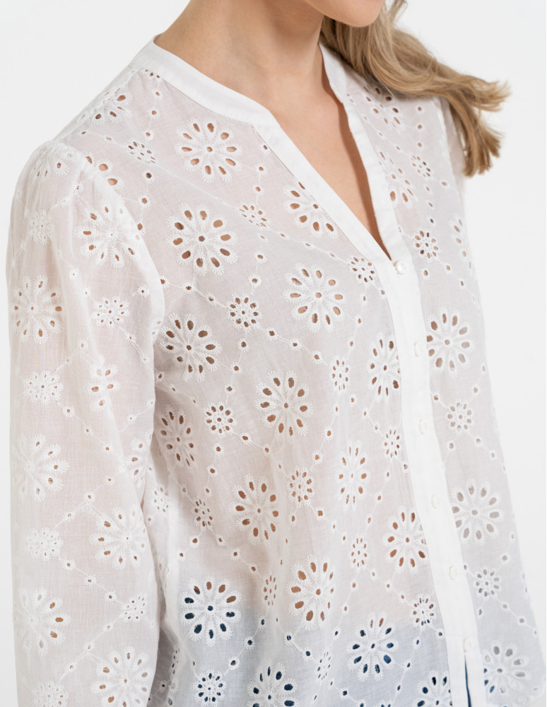 Lekka, kobieca i niezwykle subtelna koszula damska ażurowa to idealna propozycja na wiosnę i lato. Wykonana z haftowanej, przewiewnej tkaniny, zachwyca delikatnym wzorem typu haft richelieu, który nadaje całości romantycznego i eleganckiego charakteru.
