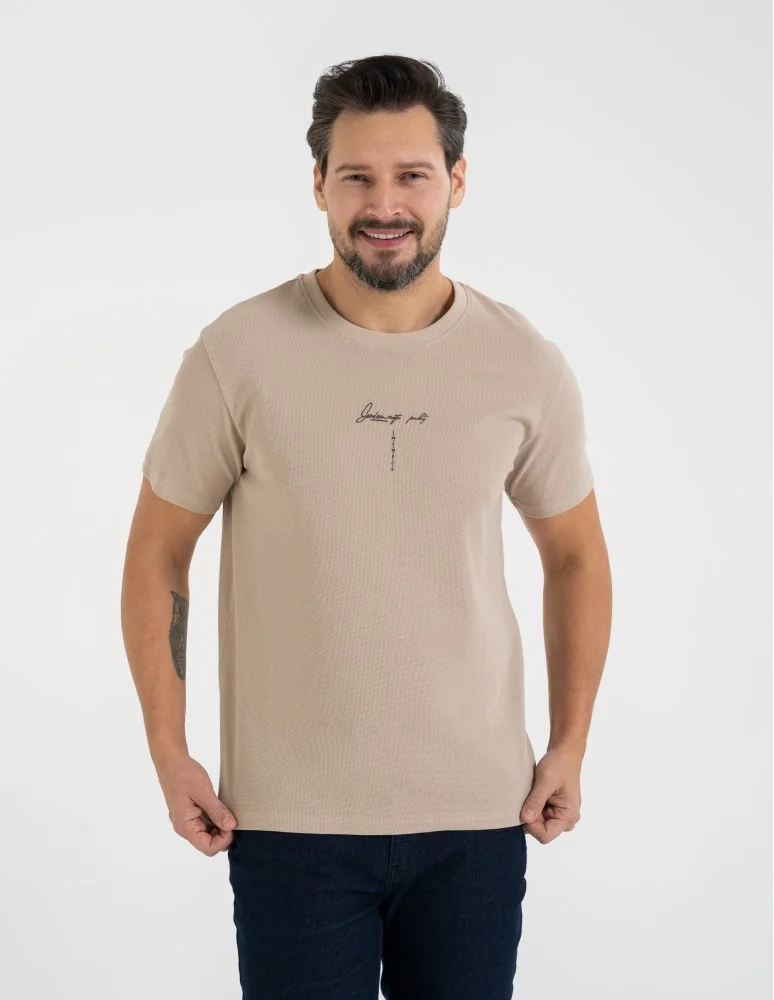 T-shirt męski bawełniany o regularnym kroju z nadrukiem BEIGE