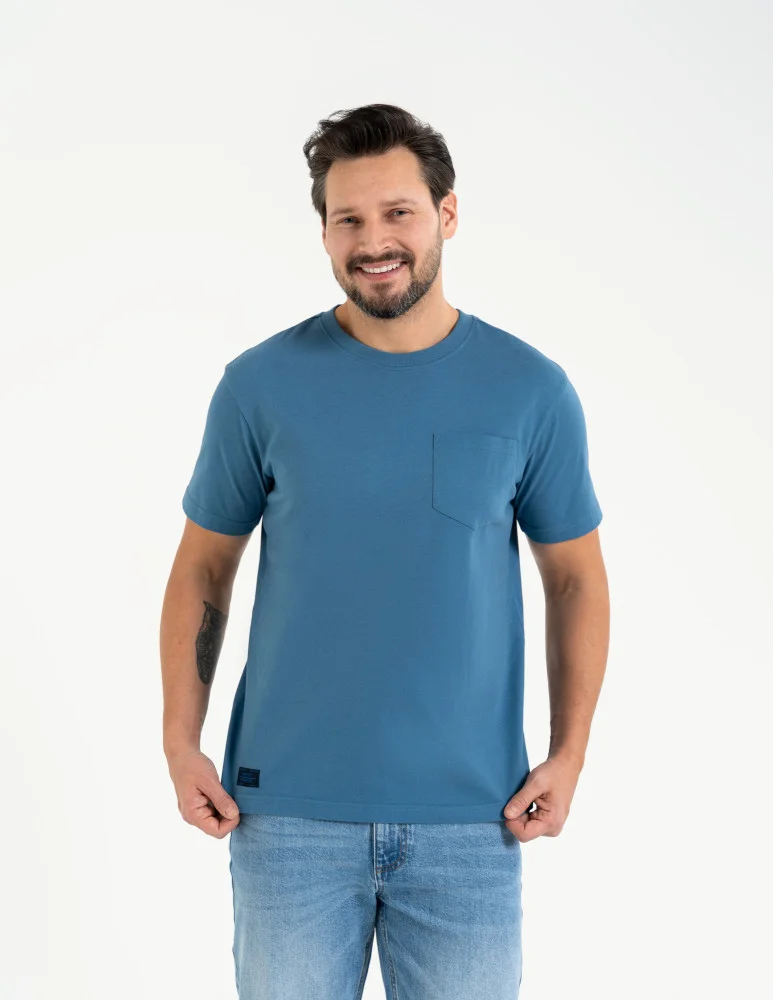 Męska koszulka z krótkim rękawem z kieszonką NIEBIESKI