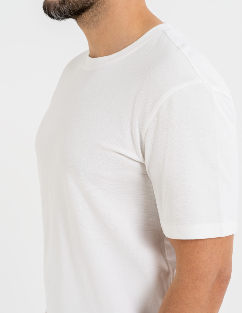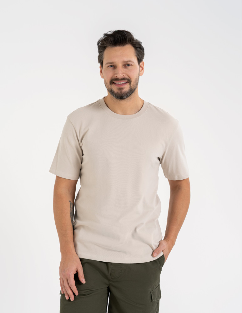 Ten męski t-shirt to klasyczny element garderoby, który łączy wygodę, trwałość i elastyczność. Wykonany z wysokiej jakości bawełny czesanej z dodatkiem elastanu, materiał o gramaturze 220 gsm zapewnia odpowiednią grubość i trwałość, jednocześnie gwarantując rozciągliwość, dzięki czemu t-shirt doskonale dopasowuje się do sylwetki. Prosty, klasyczny krój zapewnia swobodę ruchów i komfort przez cały dzień, a bawełna czesana dodaje przyjemności w noszeniu. Idealny do codziennych stylizacji, zarówno samodzielnie, jak i jako baza pod inne elementy garderoby.