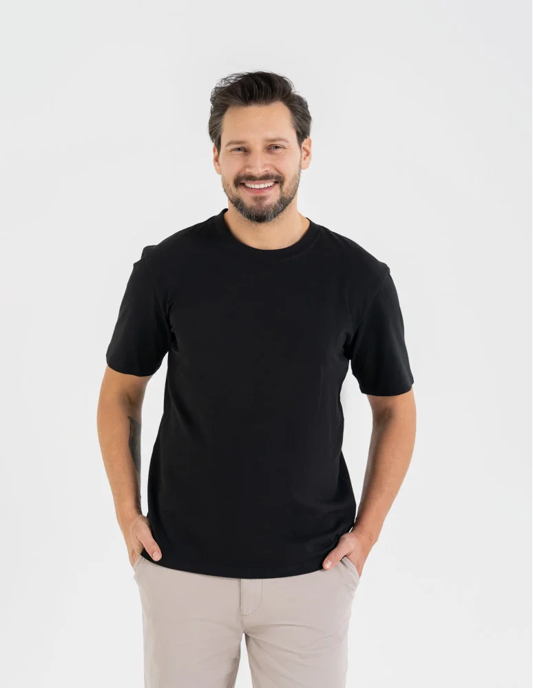 Koszulka męska t-shirt z bawełny czesanej CZARNY