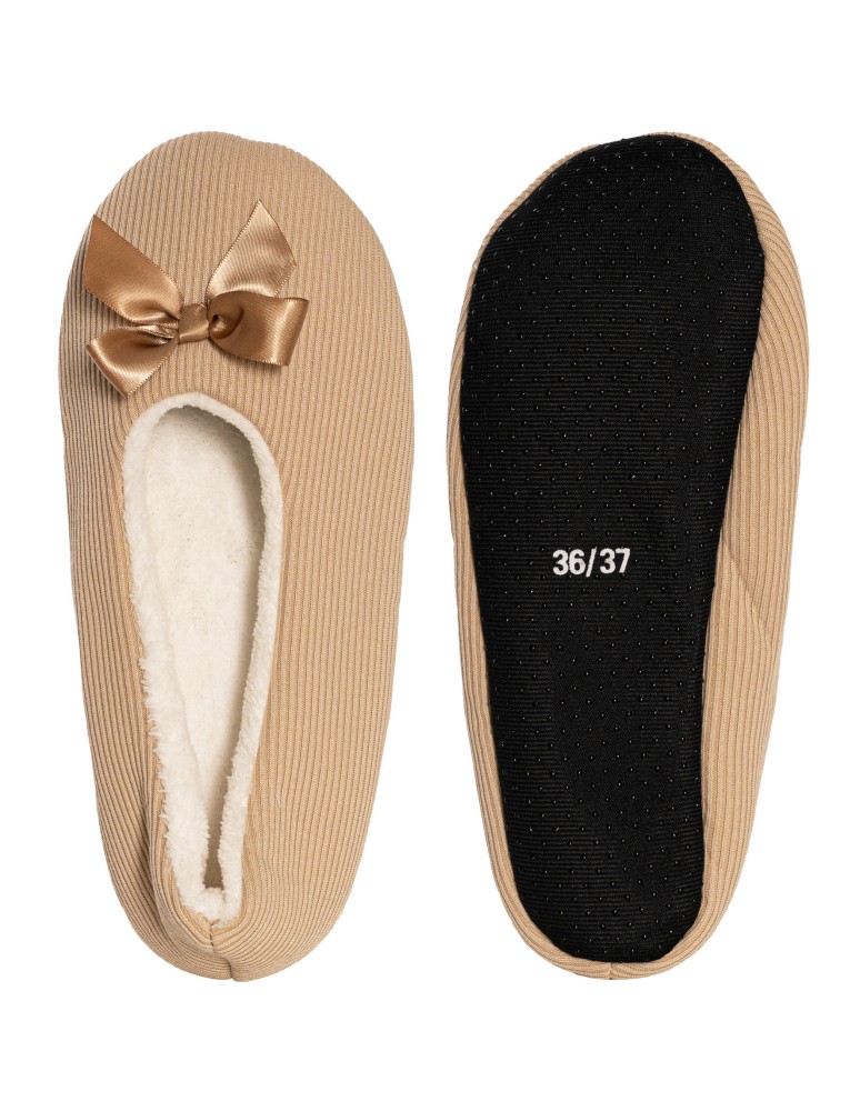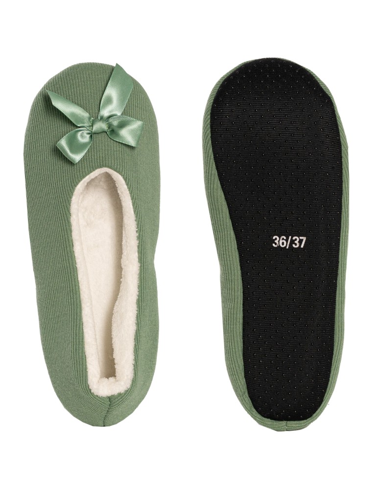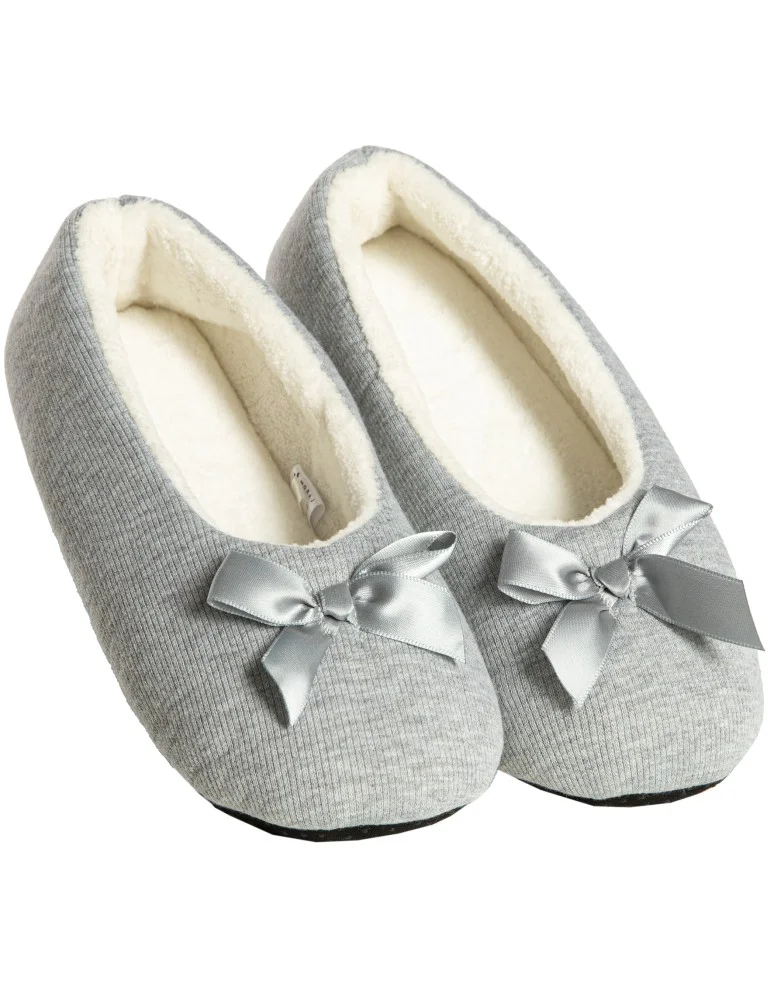 Te damskie kapcie w formie balerin to propozycja dla kobiet, które cenią maksymalny komfort i ciepło, szczególnie w chłodniejsze dni. Prosty, elegancki design z subtelną kokardką nadaje im delikatnego, kobiecego charakteru, dzięki czemu świetnie prezentują się jako element domowego stylu.