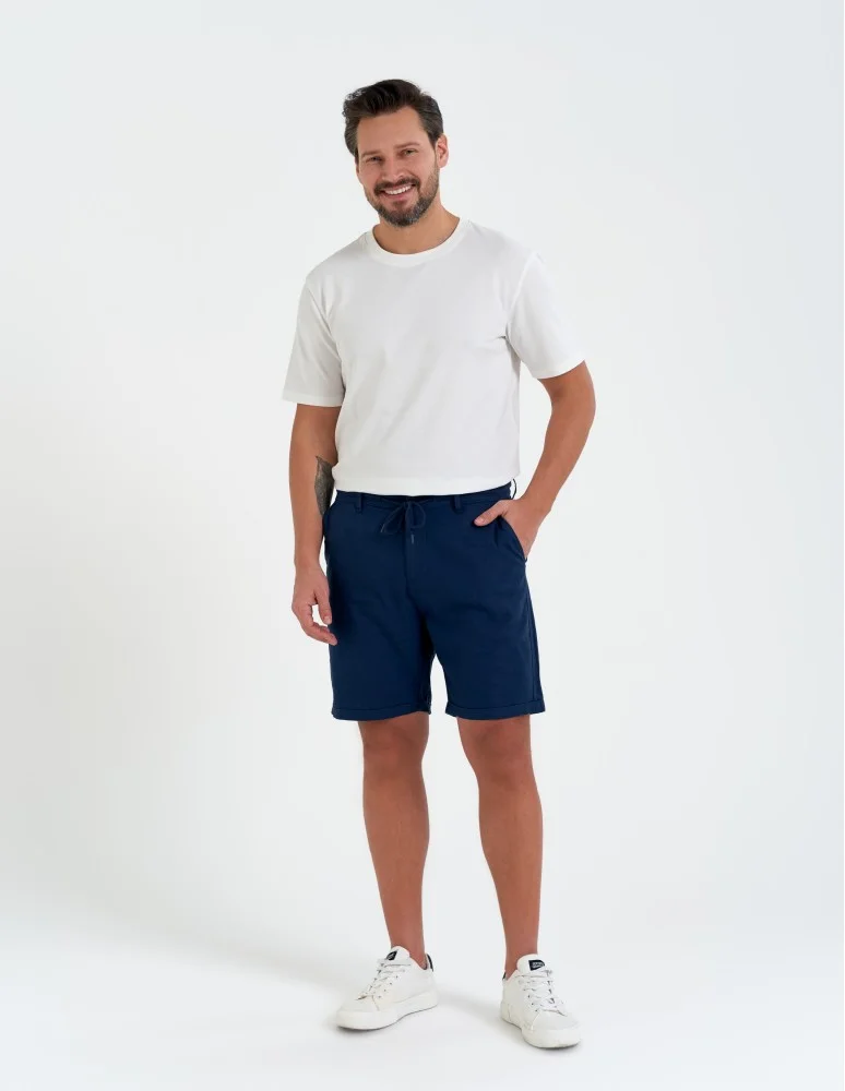 Spodenki męskie lniane casual wiązane z kieszeniami GRANATOWY