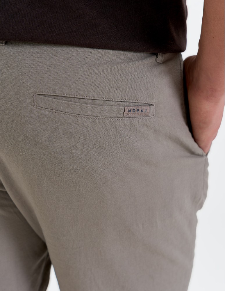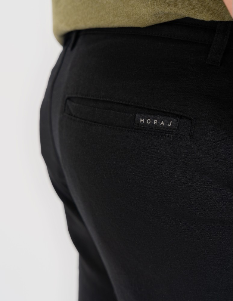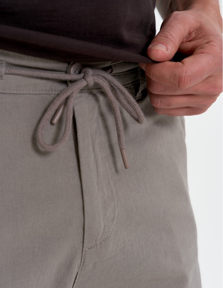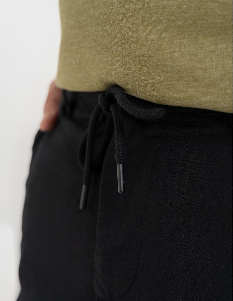 Model wyposażony jest w praktyczne kieszenie oraz regulację w pasie na wiązanie, co pozwala dopasować je do sylwetki i zwiększa komfort noszenia. Prosty, ponadczasowy krój sprawia, że łatwo zestawisz je zarówno z t-shirtem, jak i koszulą.