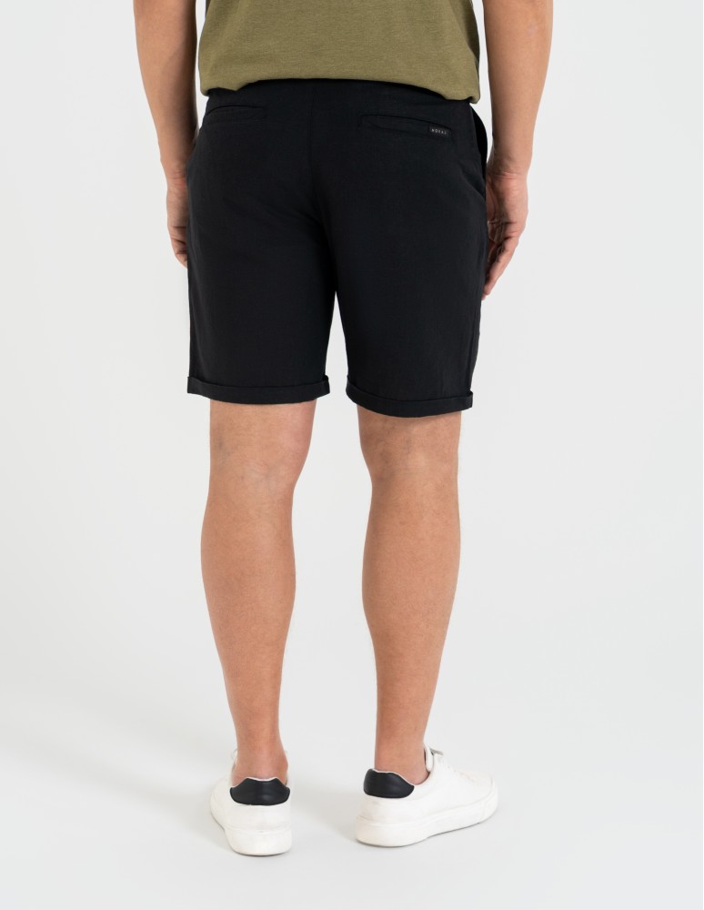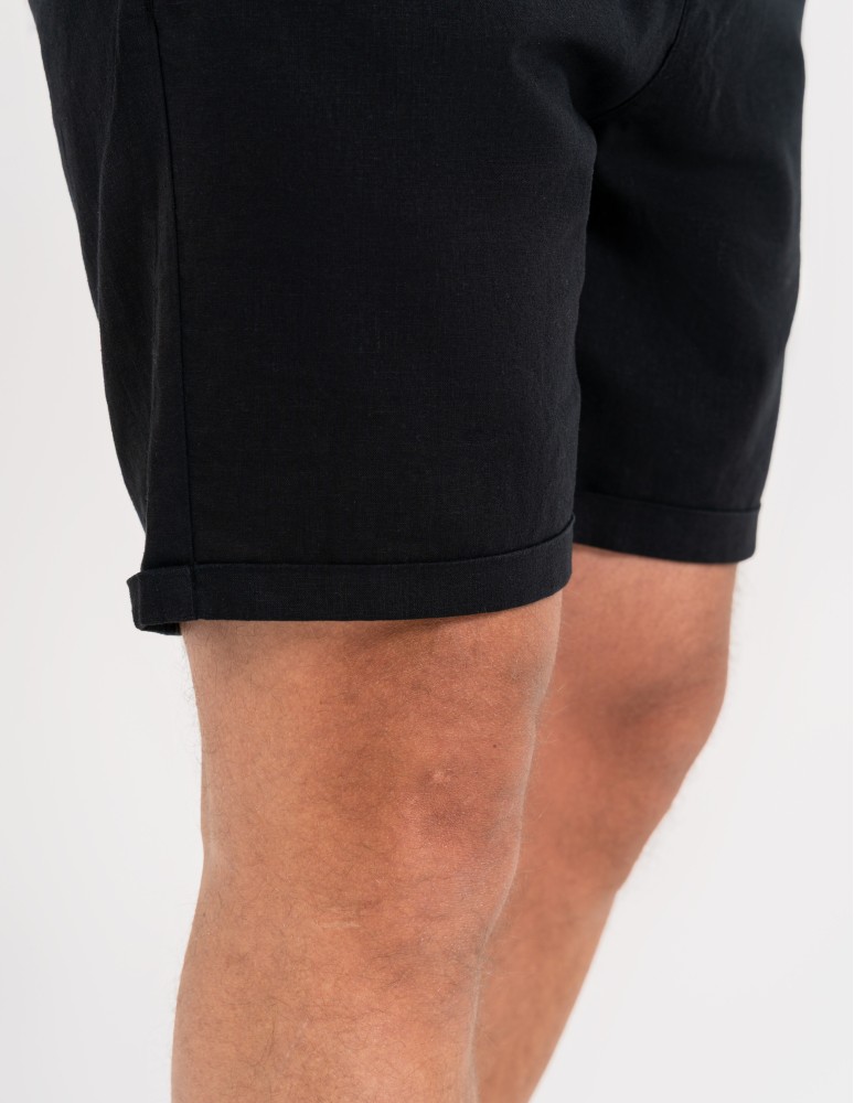 Dodatek lnu odpowiada za lekkość i oddychalność, natomiast wiskoza nadaje materiałowi gładkość i delikatność. Dzięki temu szorty są nie tylko wygodne, ale też prezentują się estetycznie i schludnie.