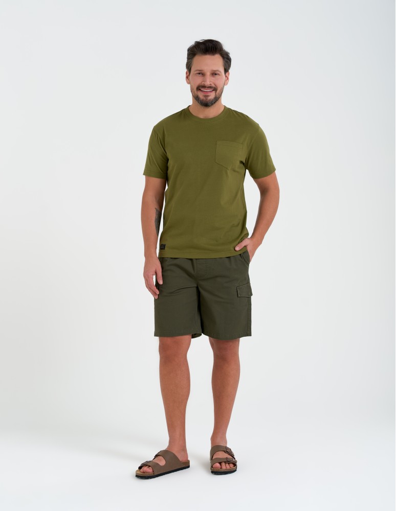 Spodenki męskie typu cargo to praktyczna i wygodna propozycja na co dzień, idealna dla mężczyzn ceniących funkcjonalność i swobodny styl. Klasyczny fason zapewnia komfort noszenia oraz łatwe dopasowanie do różnych stylizacji.