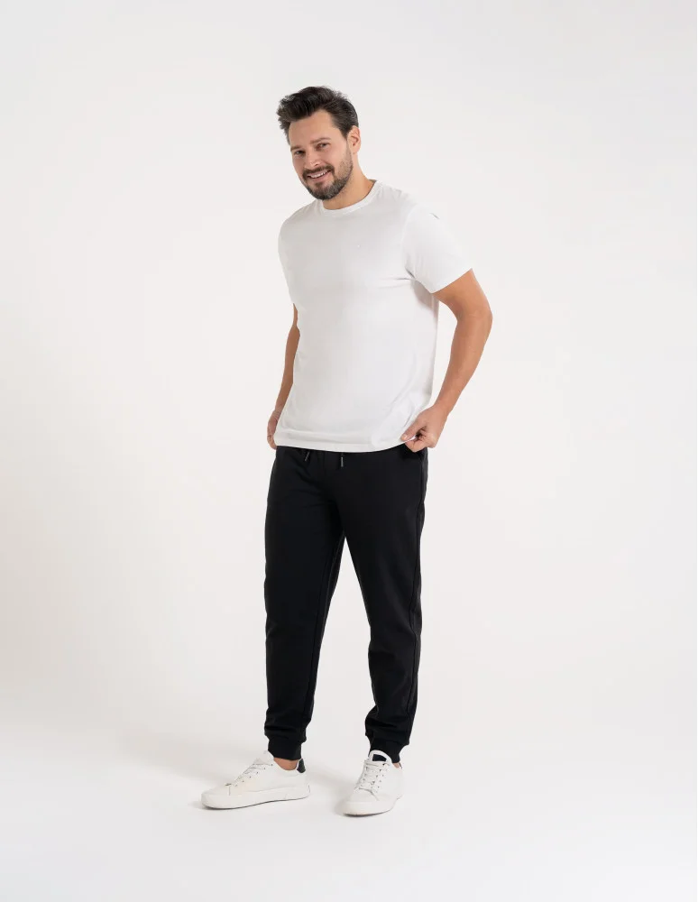 Te męskie spodnie dresowe zostały zaprojektowane z myślą o codziennym komforcie i swobodzie ruchu. Wykonane z miękkiego, przyjemnego w dotyku materiału, dobrze układają się na sylwetce i sprawdzają się zarówno w domowym użytkowaniu, jak i w casualowych stylizacjach na co dzień. Elastyczny pas z regulacją na troczki pozwala na indywidualne dopasowanie, a zwężane nogawki zakończone ściągaczami nadają całości nowoczesny, uporządkowany wygląd. To praktyczny wybór dla mężczyzn ceniących wygodę bez rezygnacji z estetyki.