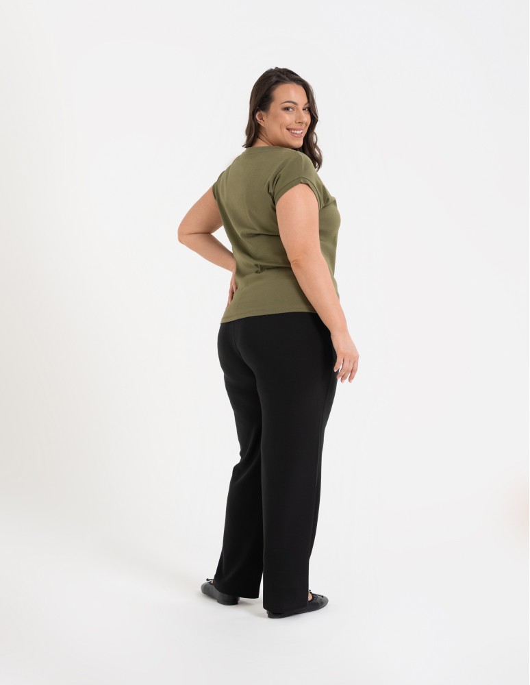 Model wykonany jest z miękkiego i elastycznego materiału, który przyjemnie dopasowuje się do ciała oraz zapewnia wygodę użytkowania. Proste nogawki nadają spodniom klasyczny charakter i optycznie wysmuklają sylwetkę.