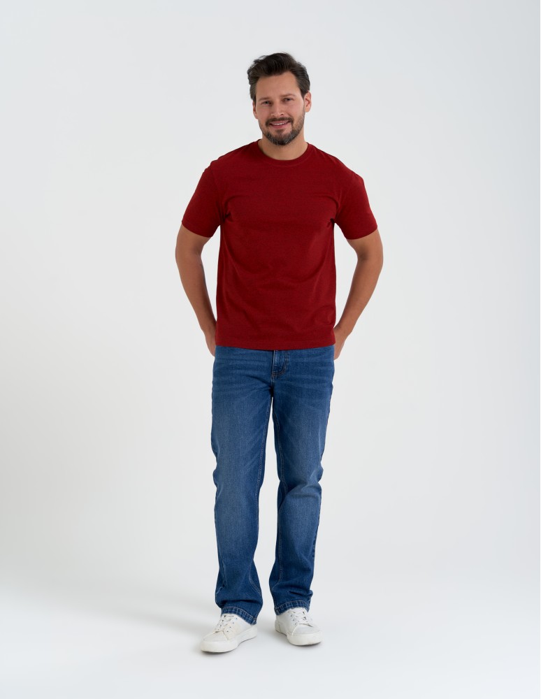 Męski T-shirt Moraj wykonany z melanżowej dzianiny to uniwersalna propozycja dla osób ceniących prostotę i dopracowane detale. Subtelny efekt melanżu nadaje koszulce głębi koloru i sprawia, że model wyróżnia się na tle klasycznych, jednolitych T-shirtów.