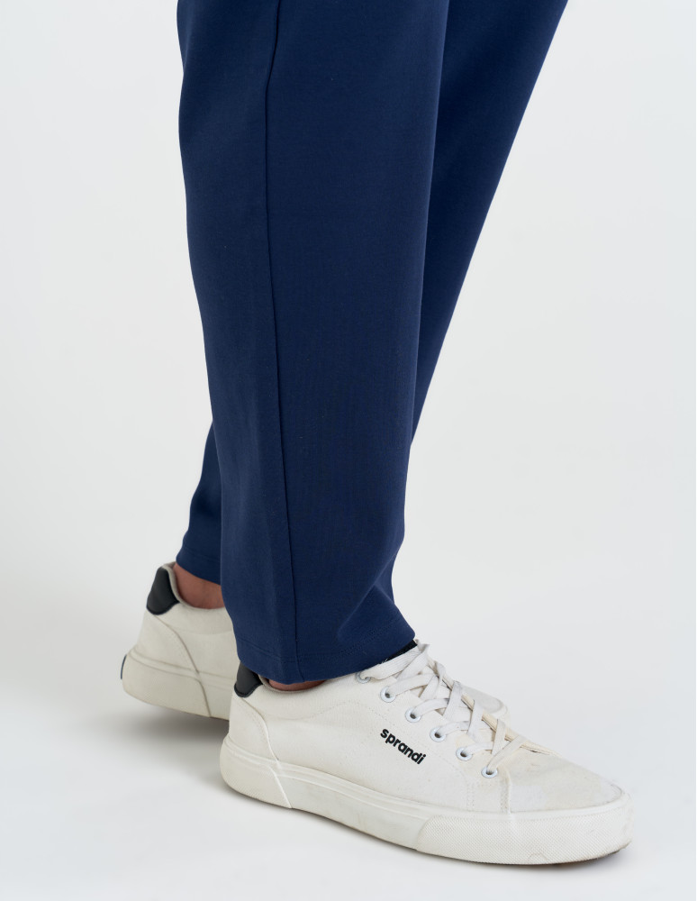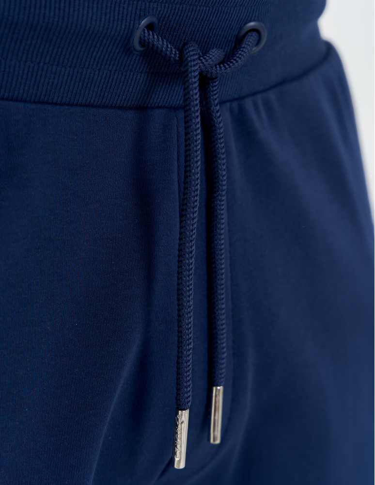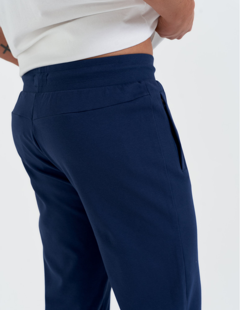 Model wyposażony jest w praktyczne kieszenie zapinane na zamek, które zapewniają bezpieczeństwo drobiazgów i podkreślają nowoczesny charakter spodni. Elastyczny pas z regulacją na dekoracyjny sznurek pozwala idealnie dopasować spodnie do sylwetki, a metalowe zakończenia i subtelne brandowanie dodają całości eleganckiego, premium wykończenia.