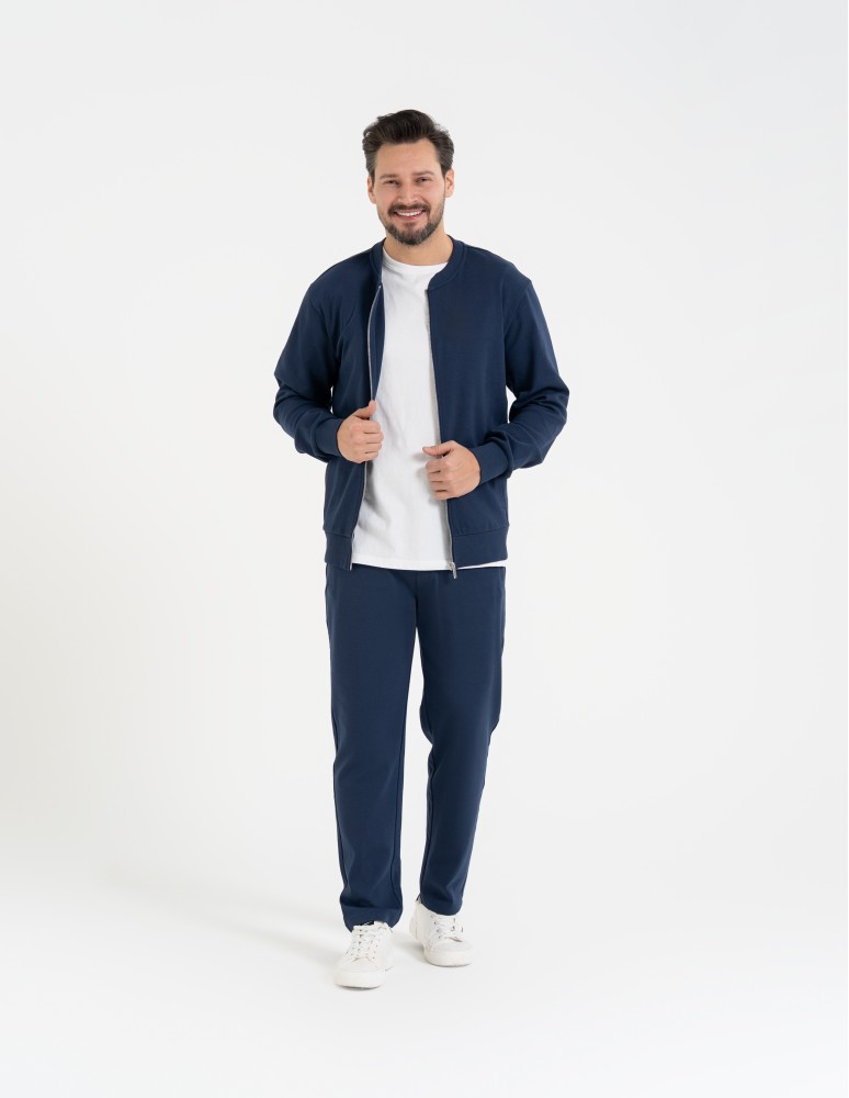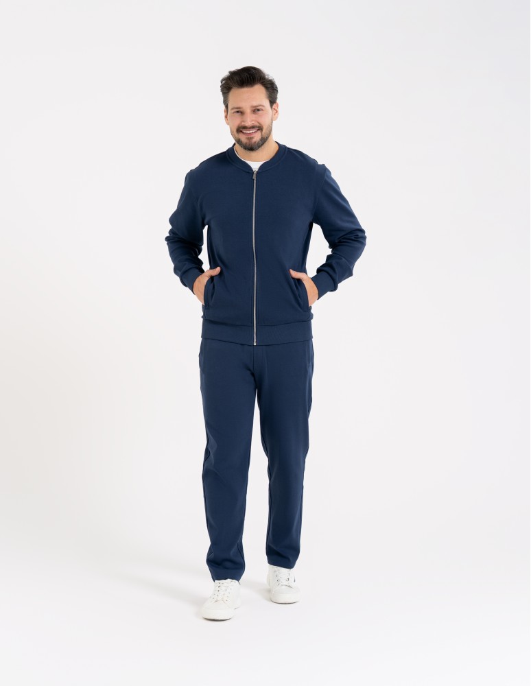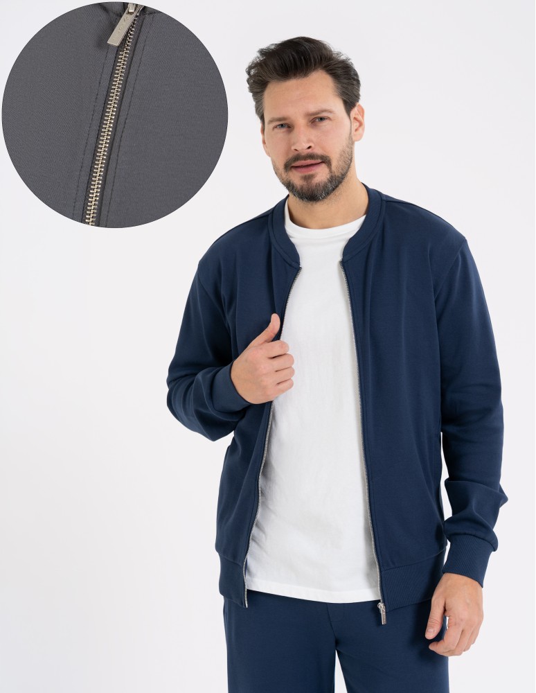 Bluza dresowa męska bomberka na zamek GRANATOWY