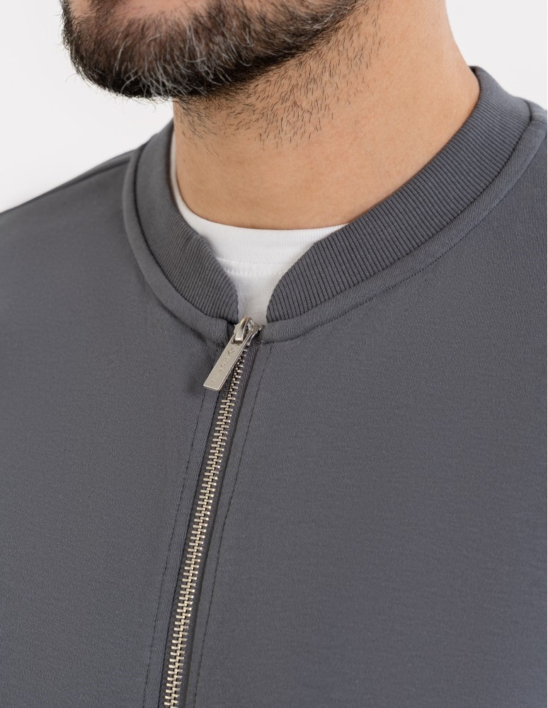 Męska bluza typu bomberkato połączenie minimalistycznego designu z funkcjonalnością na co dzień. Klasyczna forma bez kaptura, uzupełniona stójką i metalowym zamkiem z brandowanym pullerem, nadaje całości nowoczesnego, miejskiego charakteru.
