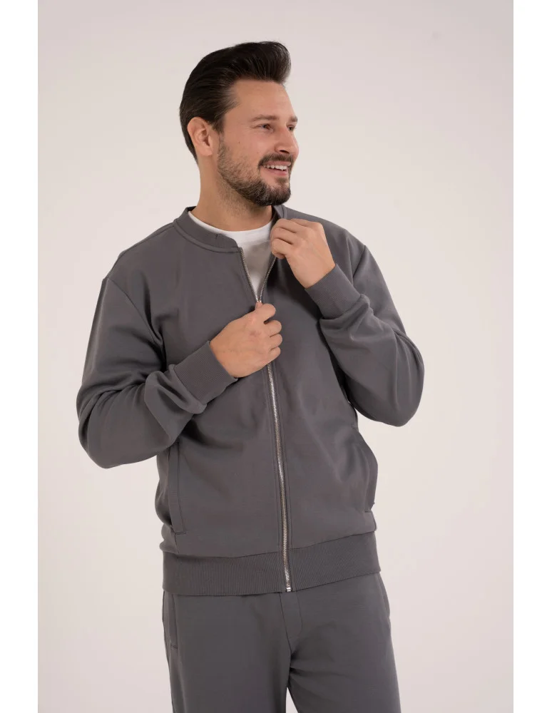 Męska bluza typu bomberkato połączenie minimalistycznego designu z funkcjonalnością na co dzień. Klasyczna forma bez kaptura, uzupełniona stójką i metalowym zamkiem z brandowanym pullerem, nadaje całości nowoczesnego, miejskiego charakteru.