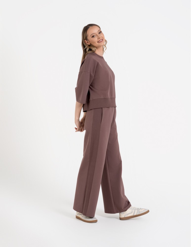 Bluza damska to idealne połączenie wygody i nowoczesnego stylu. Wykonana z wysokiej jakości dzianiny typu pętelka, łączonej z elastycznym prążkiem, zapewnia miękkość, komfort noszenia i doskonałe dopasowanie. To model stworzony z myślą o relaksie, aktywnym dniu i casualowych stylizacjach.