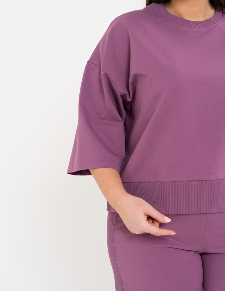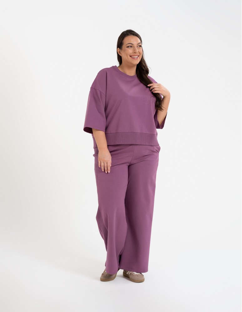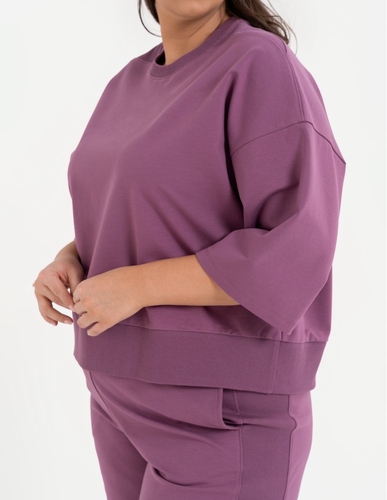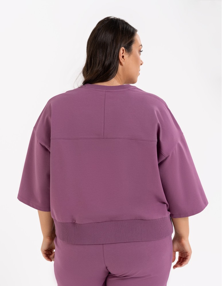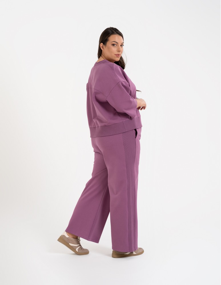 Bluza dresowa damska o luźnym kroju bez kaptura FIOLETOWY