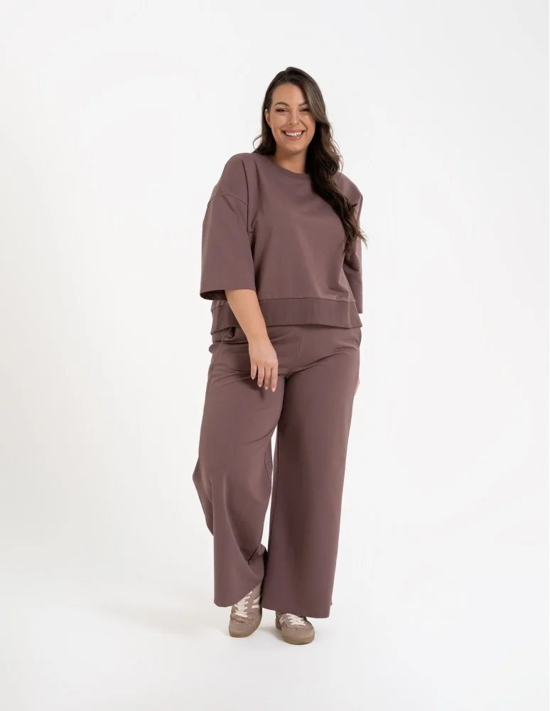 Bluza dresowa damska o luźnym kroju bez kaptura MOKKA