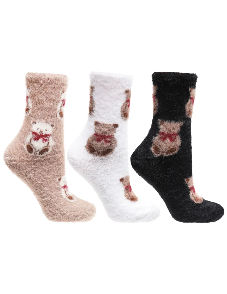 Skarpety damskie długie pluszowe z motywem misia 3-pak WIELOKOLOROWY