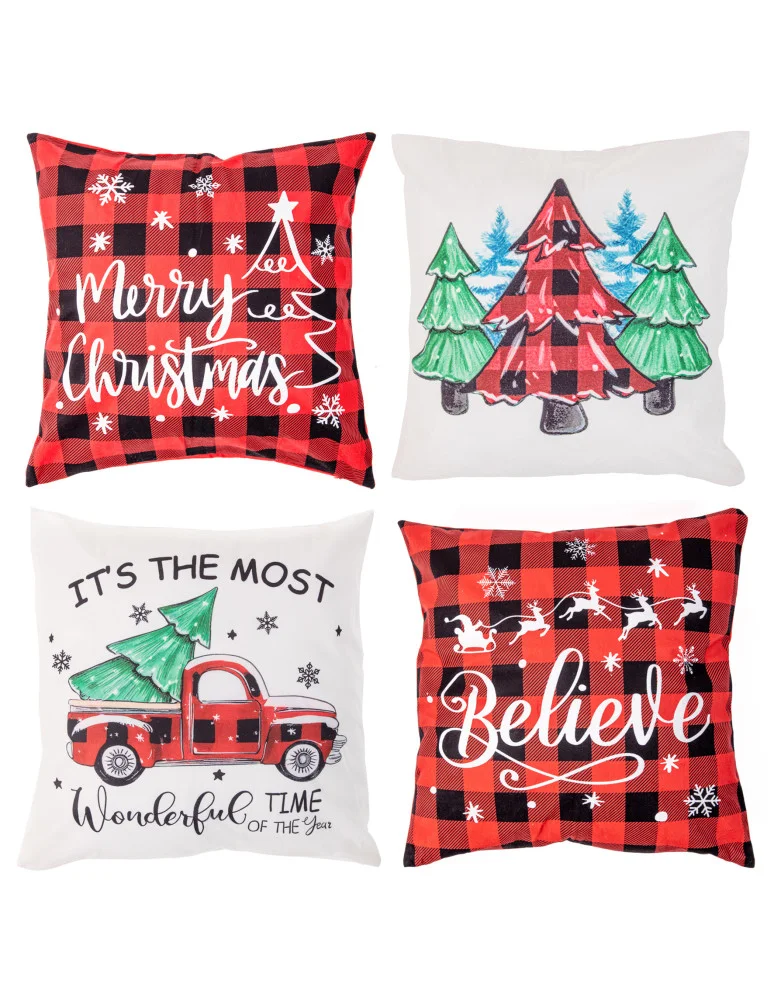 Dekoracyjne poszewki na poduszkę świąteczne 4-pak WIELOKOLOROWY