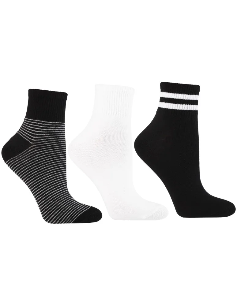 Skarpety damskie za kostkę bawełniane z paskami 3-pak WIELOKOLOROWY