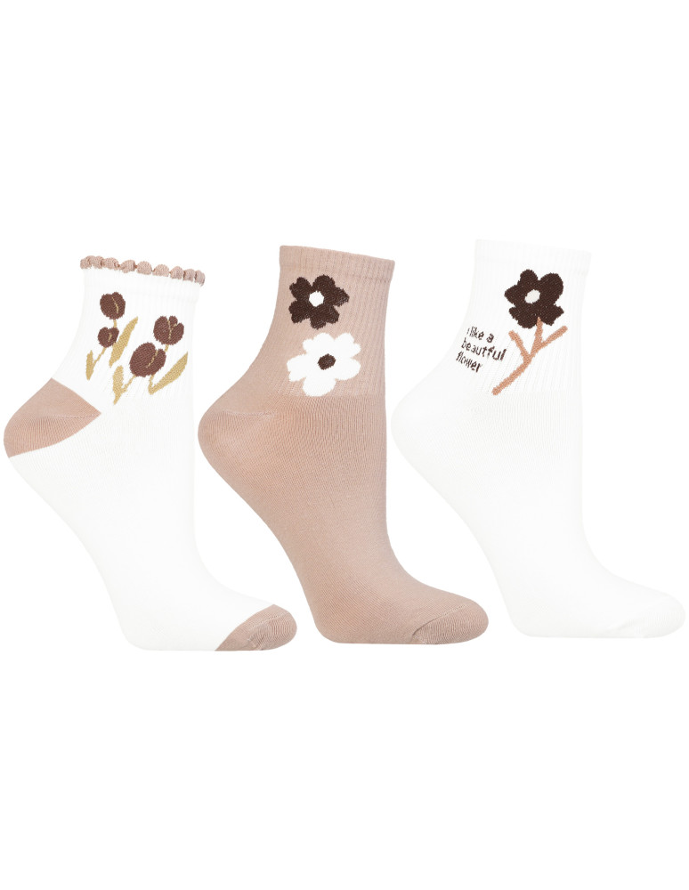 Damskie skarpety za kostkę z kwiatowym motywem 3-pak WIELOKOLOROWY