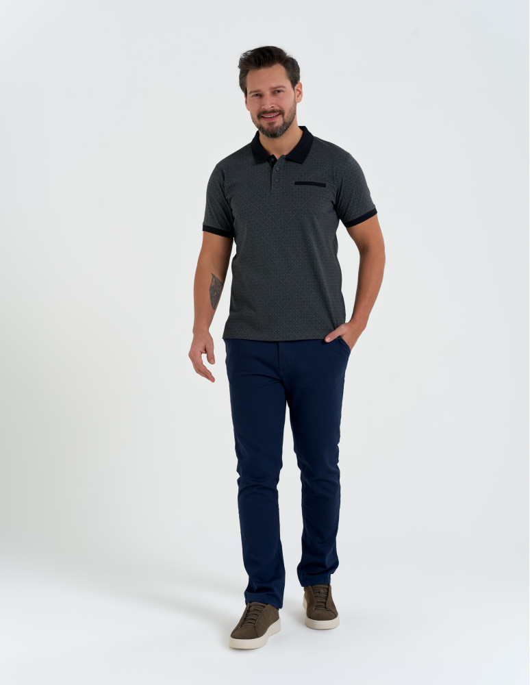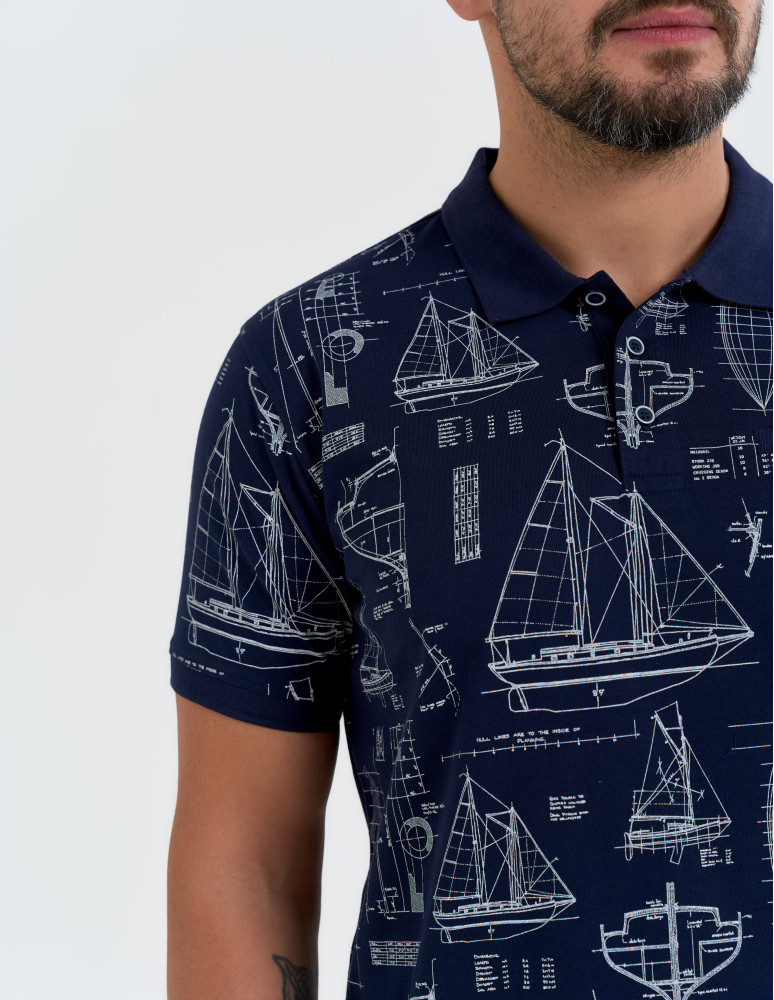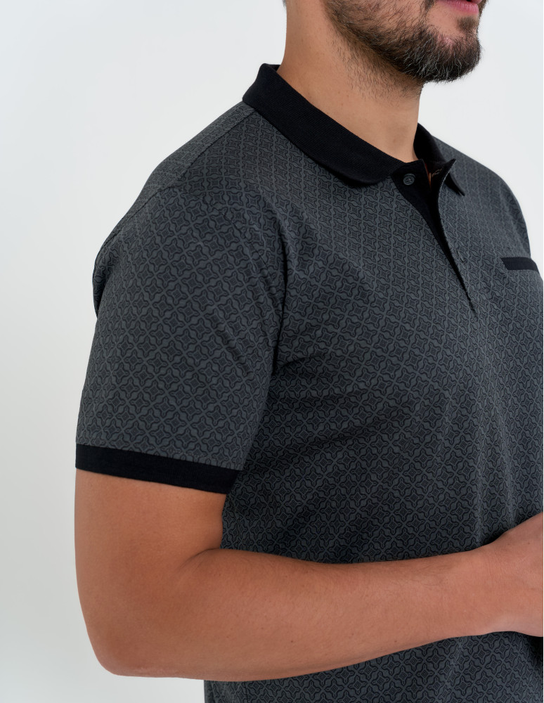 Męska koszulka polo wykonana w 100% z wysokiej jakości bawełny, która zapewnia komfort noszenia i doskonałą oddychalność przez cały dzień. Dzianina jest miękka w dotyku, a subtelny, pełnopowierzchniowy print nadaje koszulce nowoczesny charakter.
